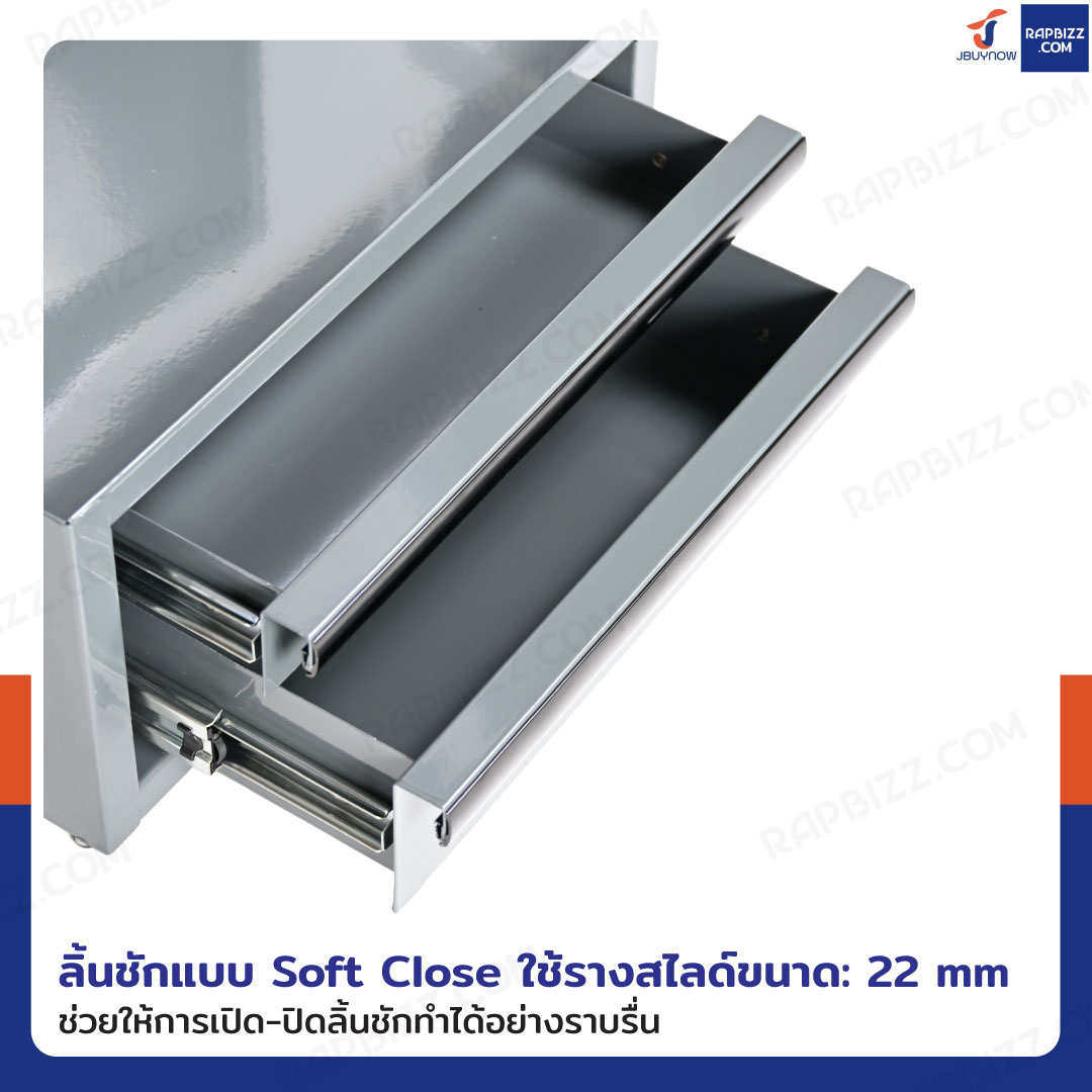 - ลิ้นชักแบบ Soft Close ใช้รางสไลด์ขนาด: 22 mm