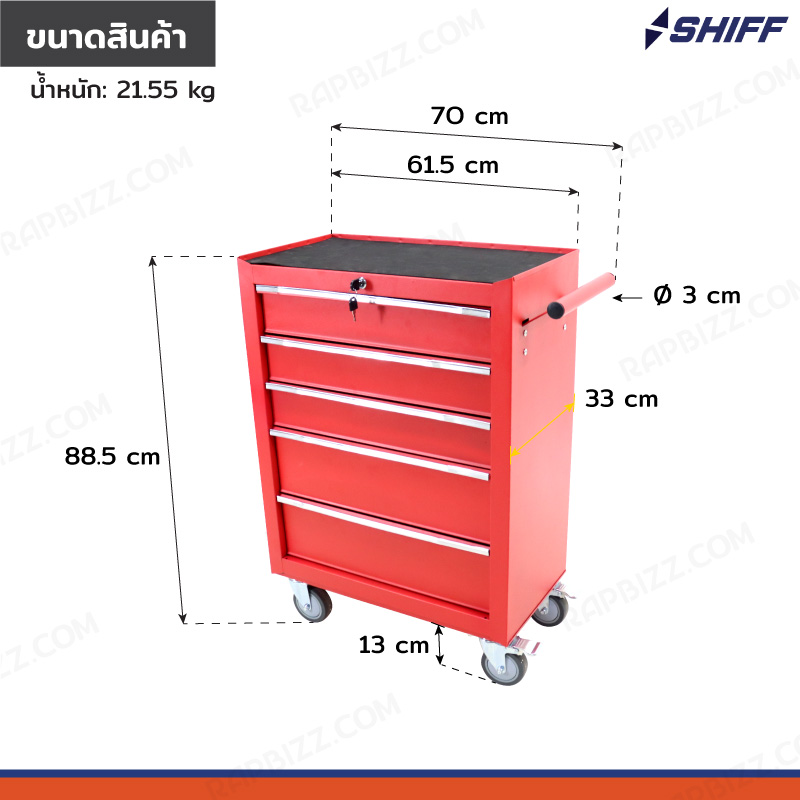 ตู้เก็บเครื่องมือรถเข็น 5 ลิ้นชัก สีแดง 33x70x88.5 cm JBUYNOW SHIFF RB230807-1