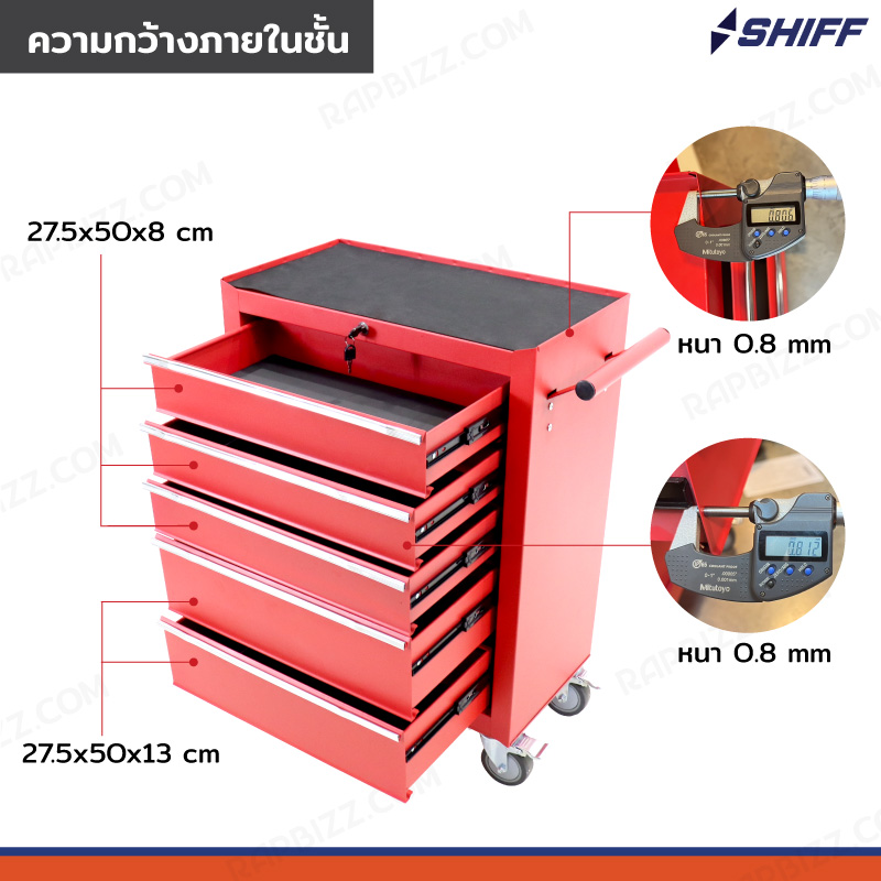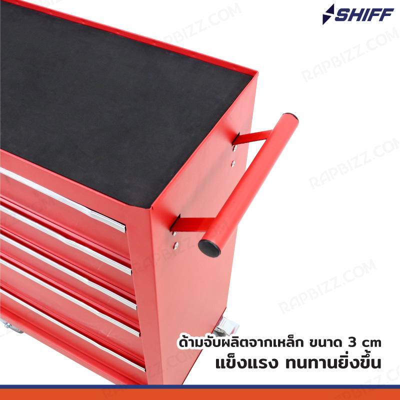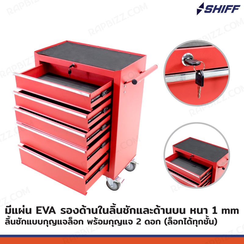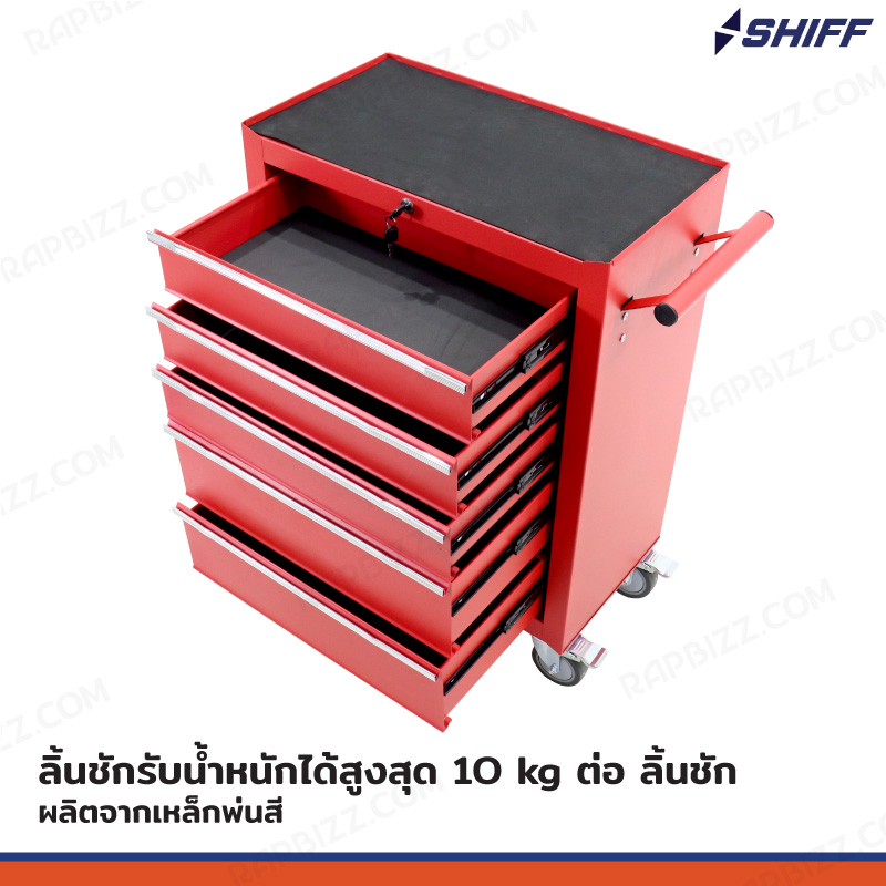 - ตู้เก็บเครื่องมือรถเข็น 5 ลิ้นชัก สีแดง (มีแผ่นรองทุกลิ้นชัก)