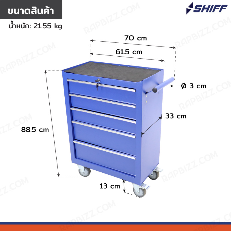 ตู้เก็บเครื่องมือรถเข็น 5 ลิ้นชัก สีน้ำเงิน 33x70x88.5cm JBUYNOW SHIFF RB230807-1