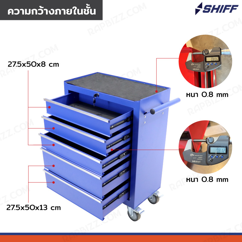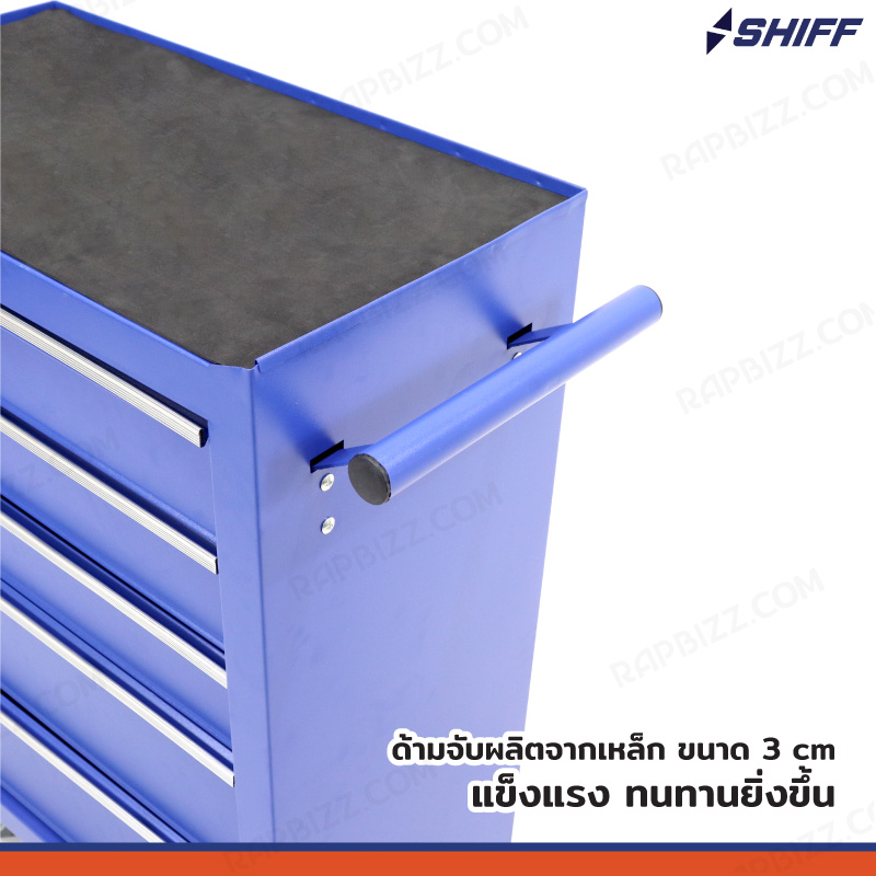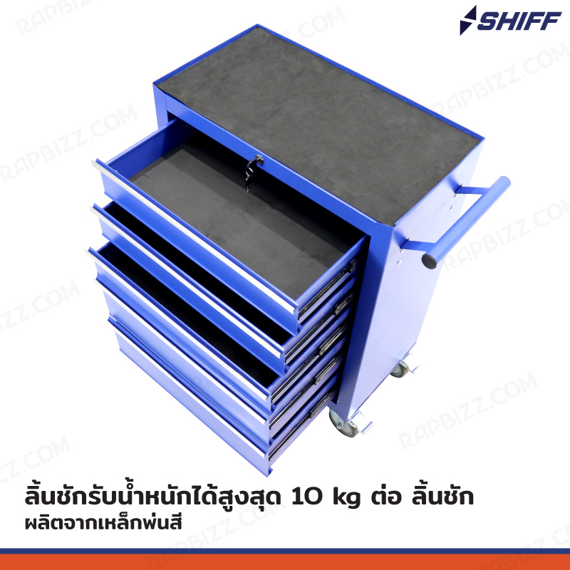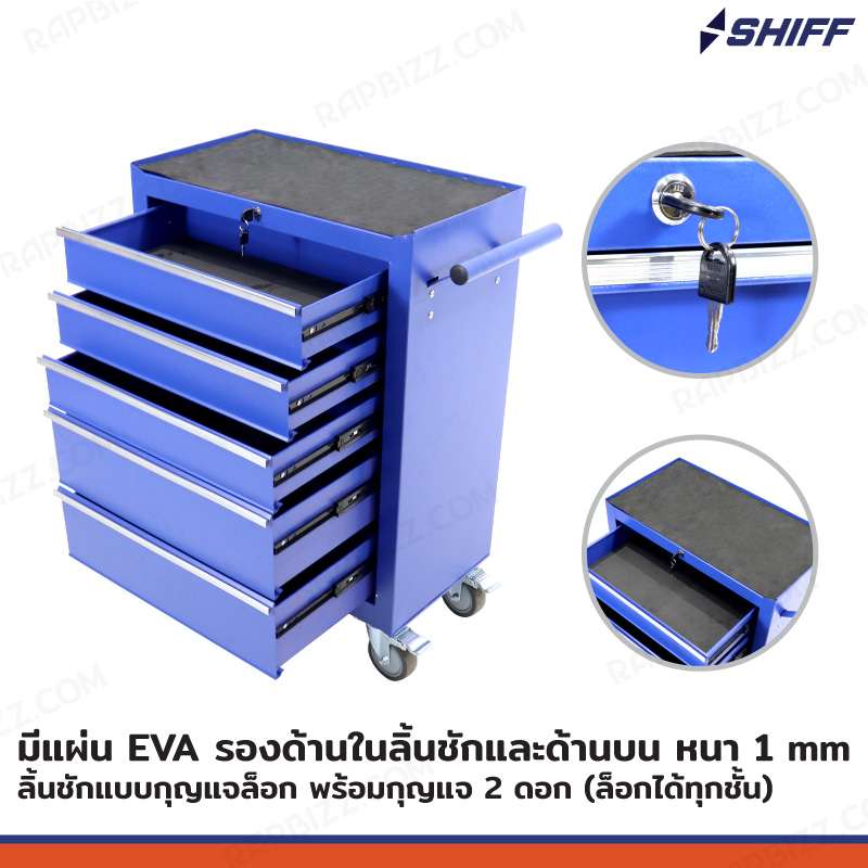 - ตู้เก็บเครื่องมือรถเข็น 5 ลิ้นชัก สีน้ำเงิน (มีแผ่นรองทุกลิ้นชัก)