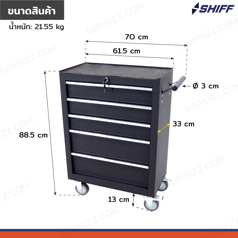 ตู้เก็บเครื่องมือรถเข็น 5 ลิ้นชัก สีดำ 33x70x88.5 cm JBUYNOW SHIFF RB230807-1