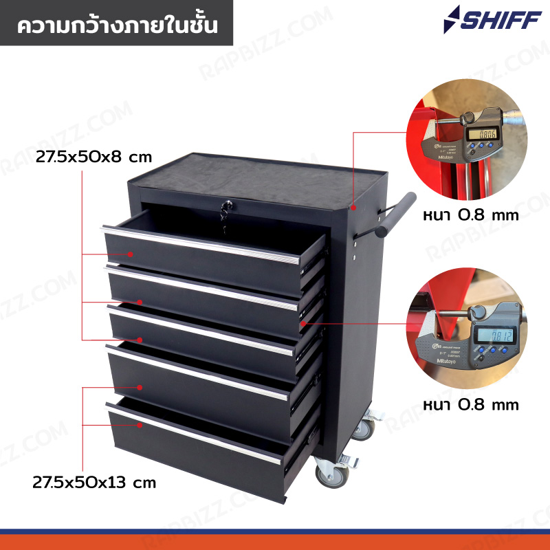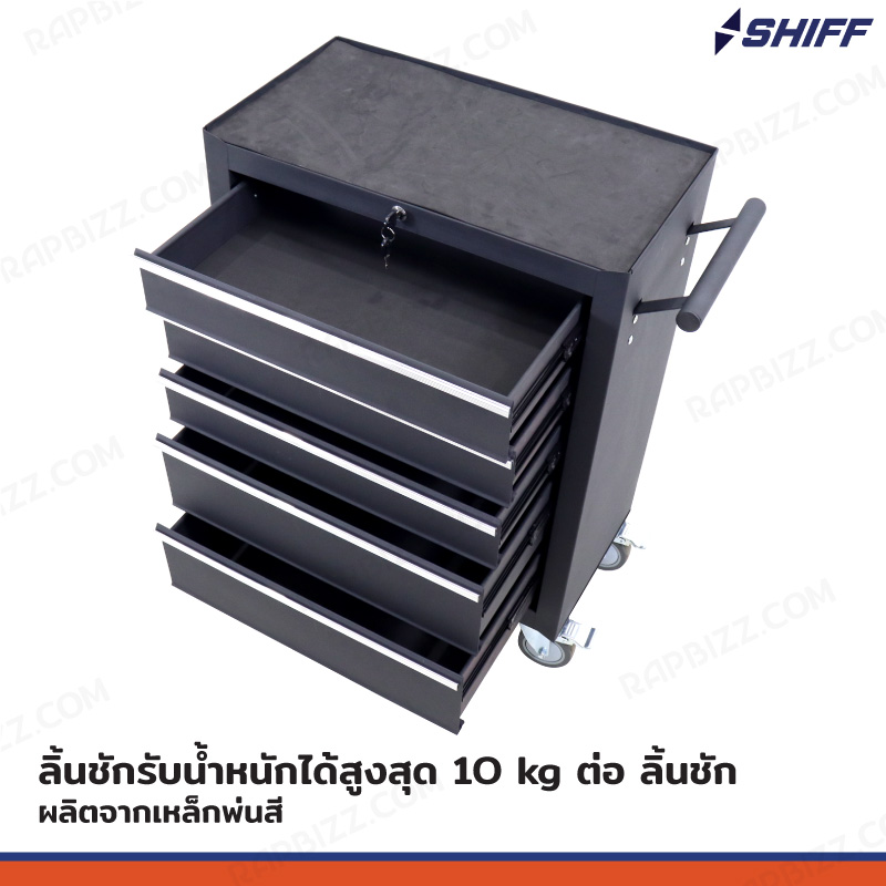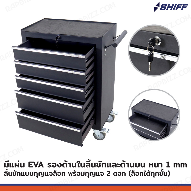 - ตู้เก็บเครื่องมือรถเข็น 5 ลิ้นชัก สีดำ (มีแผ่นรองทุกลิ้นชัก)