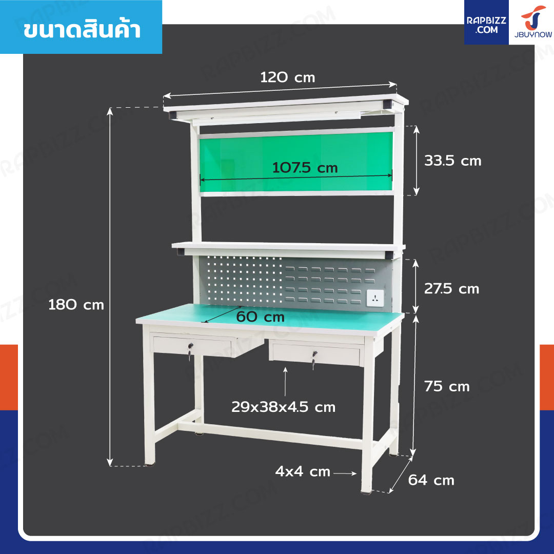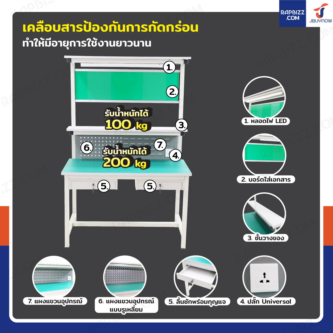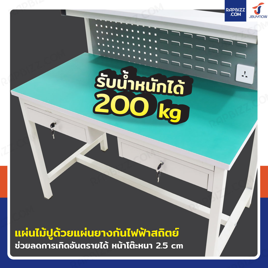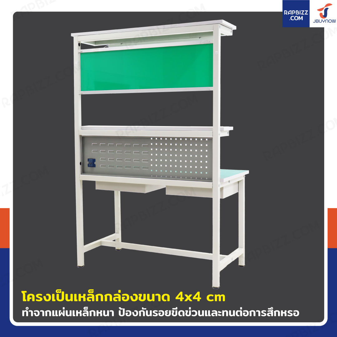 โต๊ะโรงงาน โต๊ะประกอบชิ้นงาน มีที่เสียบเอกสาร ป้องกันไฟฟ้าสถิตย์ 64x120x180 cm