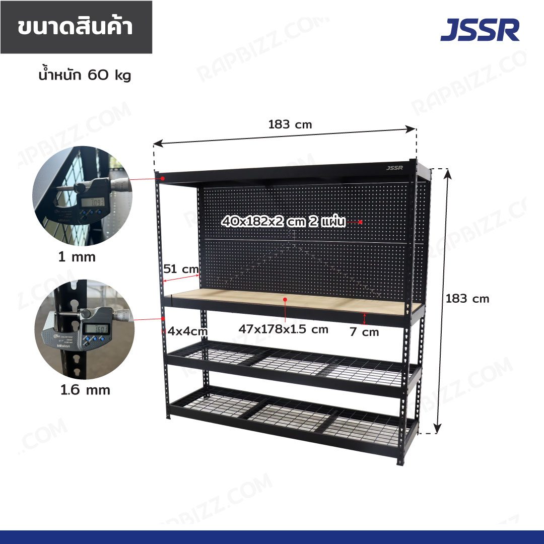JSSR โต๊ะช่าง ชั้นวางของ มีแผงแขวน 51x183x183 cm