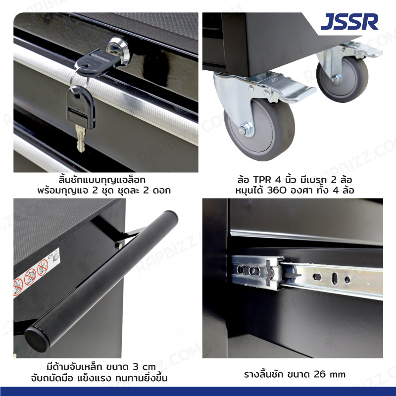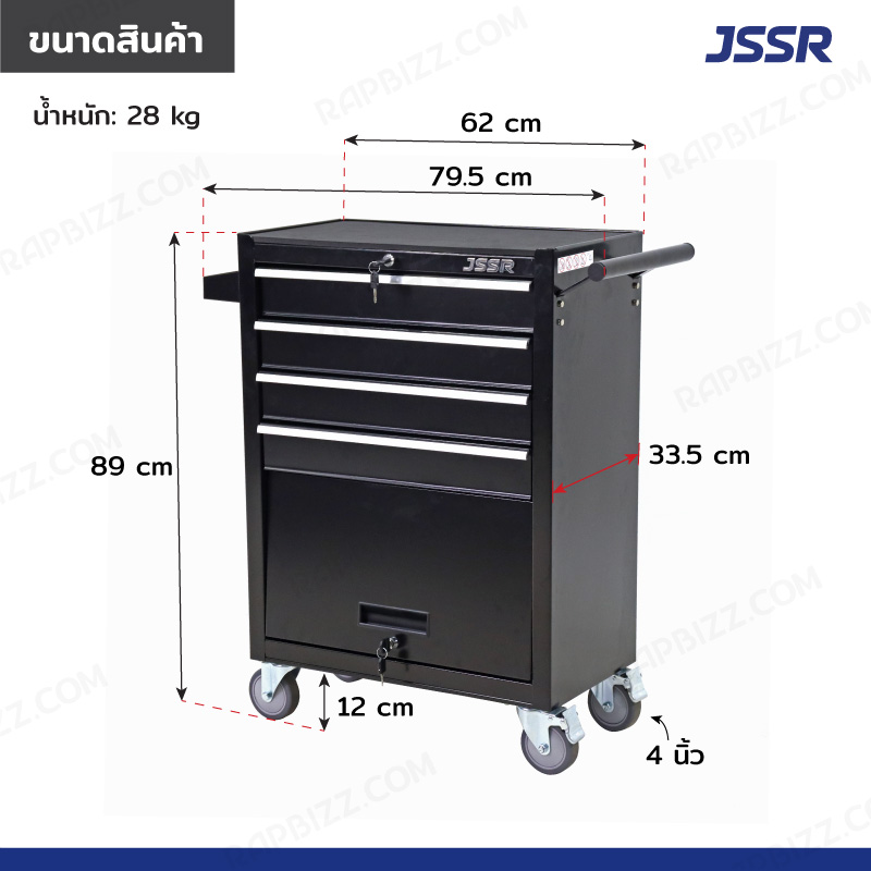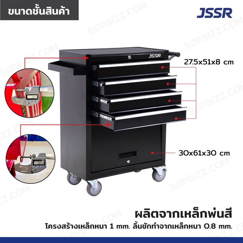 JSSR ตู้เครื่องมือ 4 ลิ้นชัก+ 1 ช่องเก็บของ 33.5x79.5x89 cm สีดำ JBUYNOW