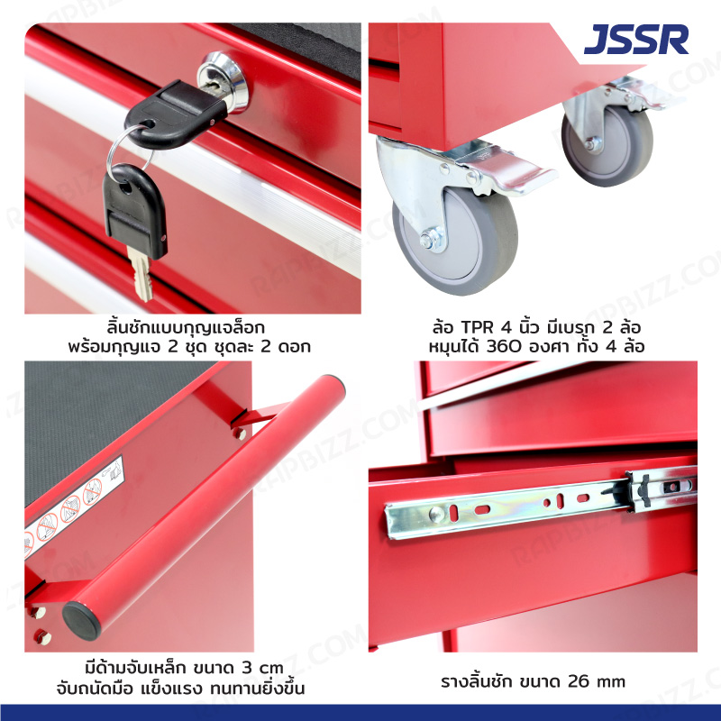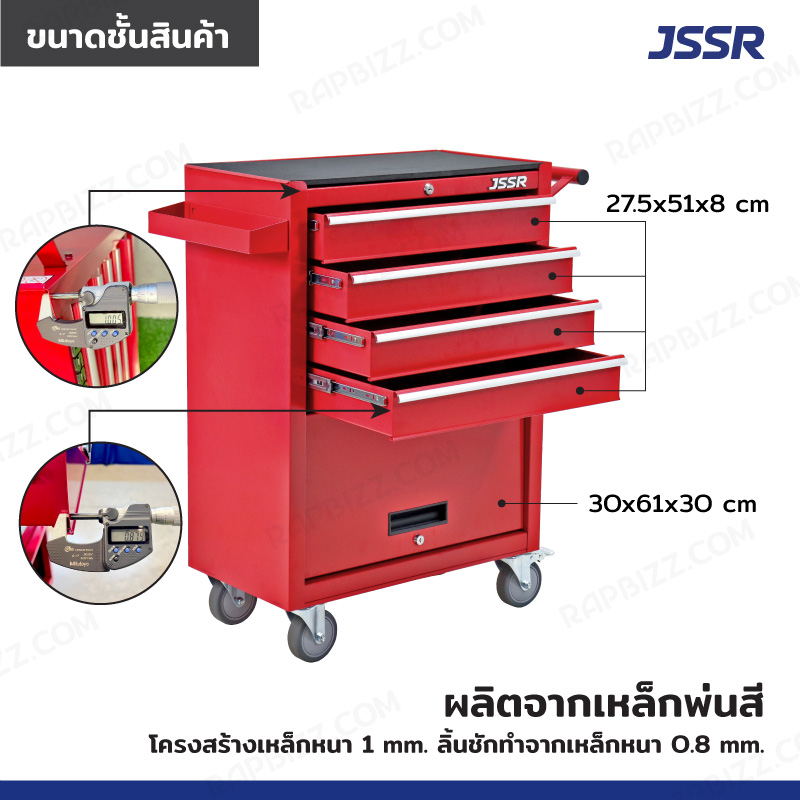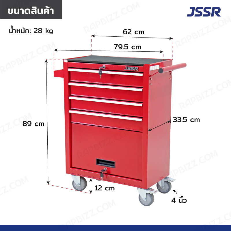 JSSR ตู้เครื่องมือ 4 ลิ้นชัก+1 ช่องเก็บของ 33.5x79.5x89 cm สีแดง JBUYNOW