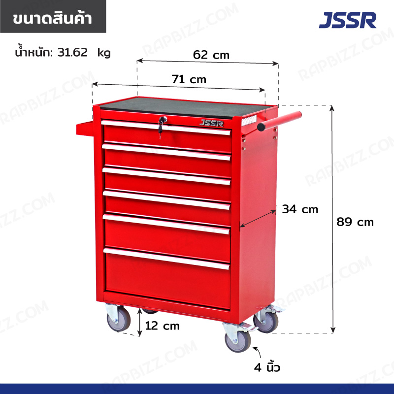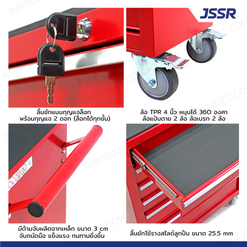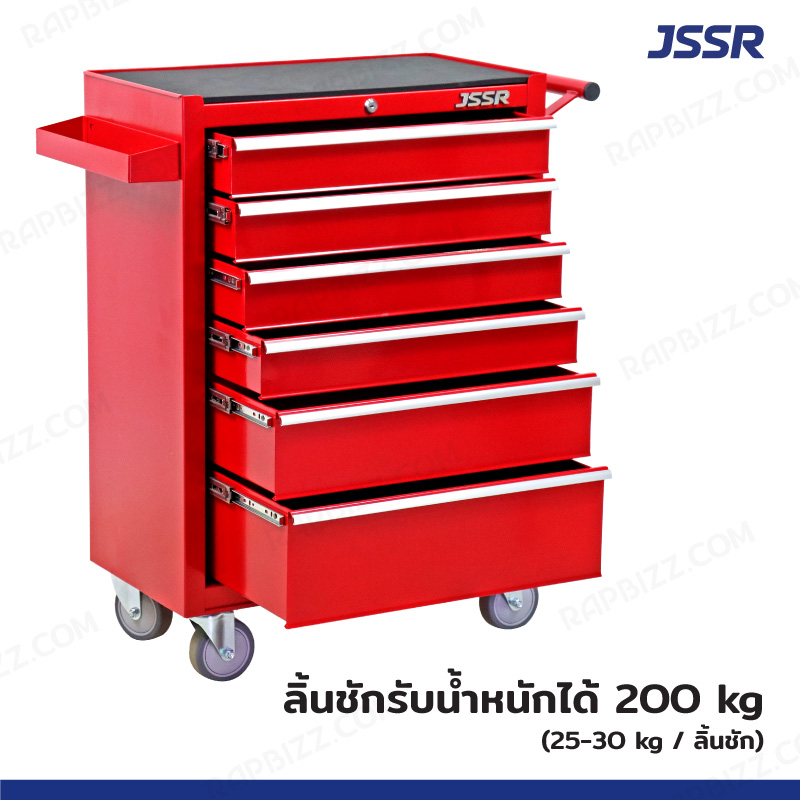 ตู้เครื่องมือ 6 ลิ้นชัก มีกุญแจล็อค 34x71x89 ซม. สีแดง รุ่นล้อใหญ่ 4 นิ้ว(เสียงเงียบ) JBUYNOW JSSR