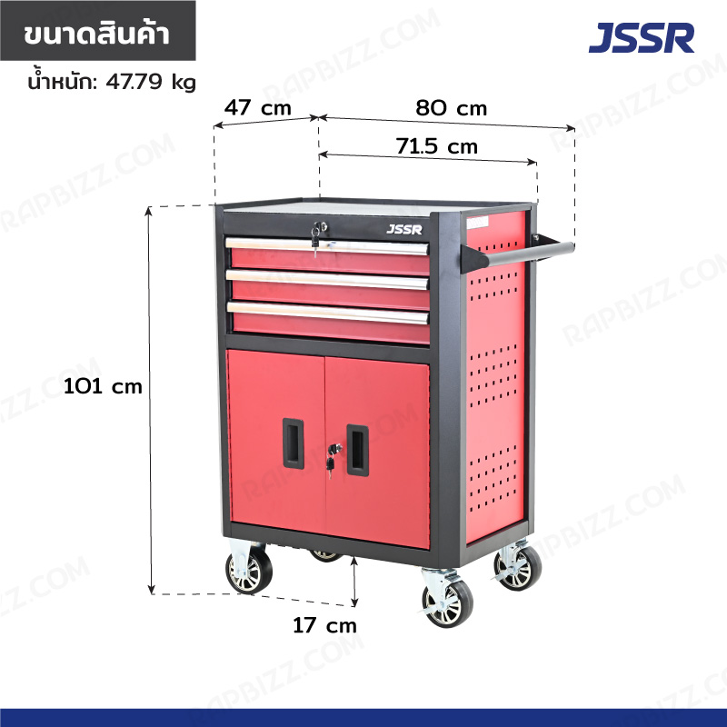 ตู้เครื่องมือรถเข็น 3 ลิ้นชัก + 1 ช่องเก็บของ 47x80x101 cm สีแดง-ดำ