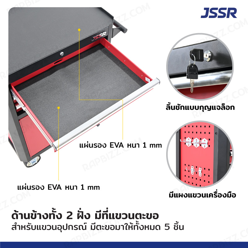 - มีฟังก์ชันเสริม สำหรับด้านข้างตู้มีแผงแขวนเครื่องมือทั้ง 2 ด้าน สามารถแขวนอุปกรณ์เครื่องมือช่างได้