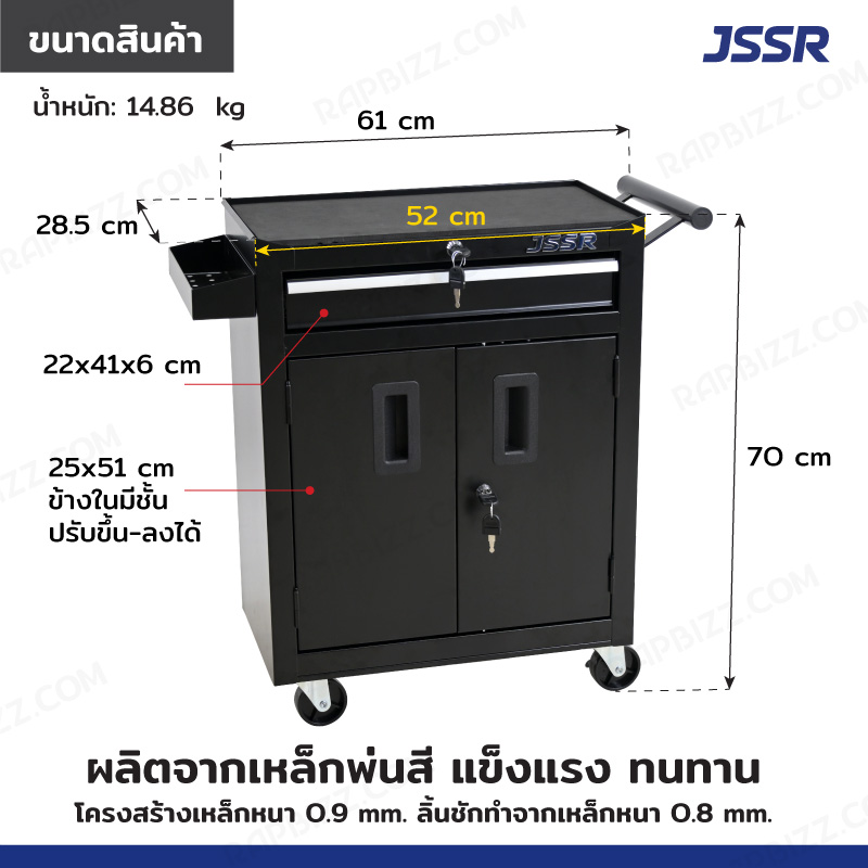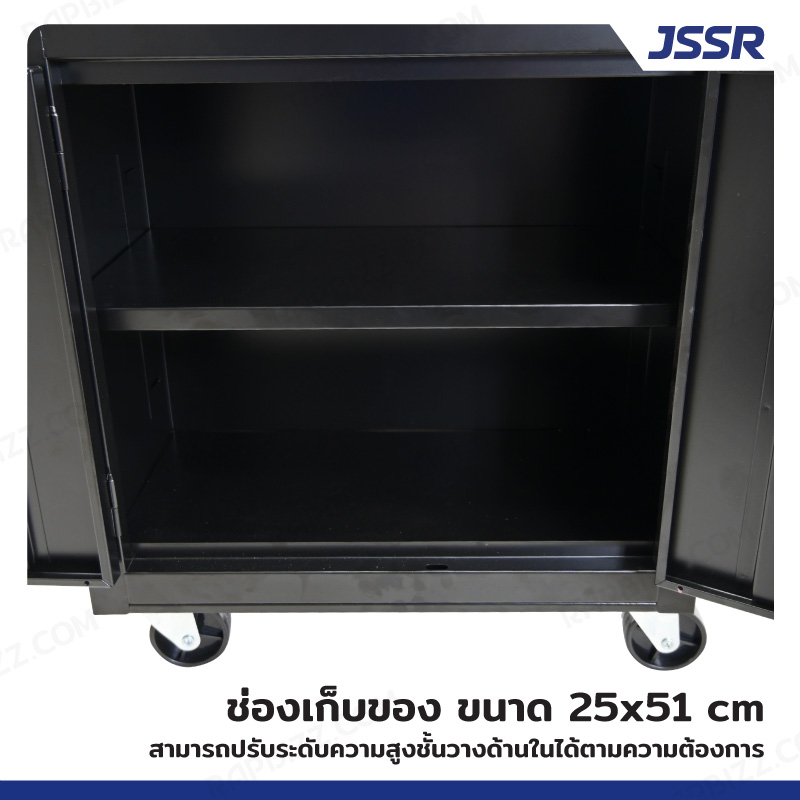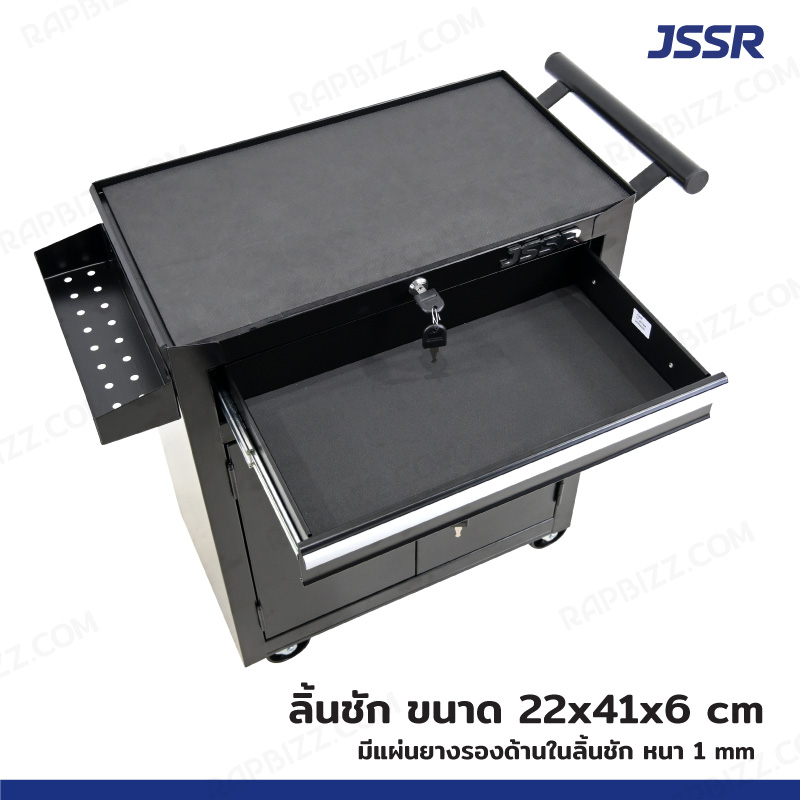 JSSR ตู้เครื่องมือ รถเข็น 1 ลิ้นชัก + 1 ช่องเก็บของ 28.5x61x70 cm สีดำ
