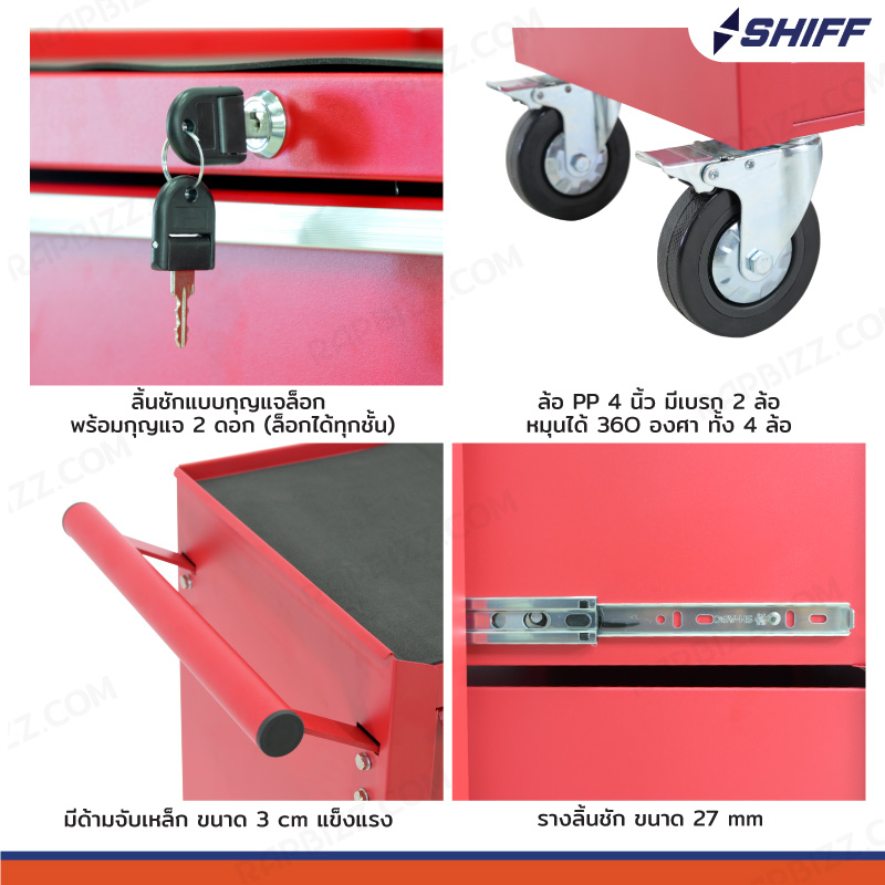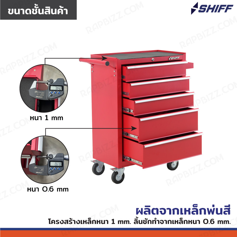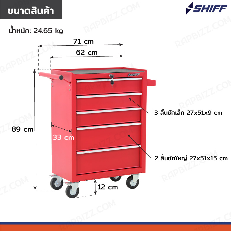 SHIFF ตู้เก็บเครื่องมือรถเข็น 5 ลิ้นชัก 33x71x89 cm สีแดง TT-245RD