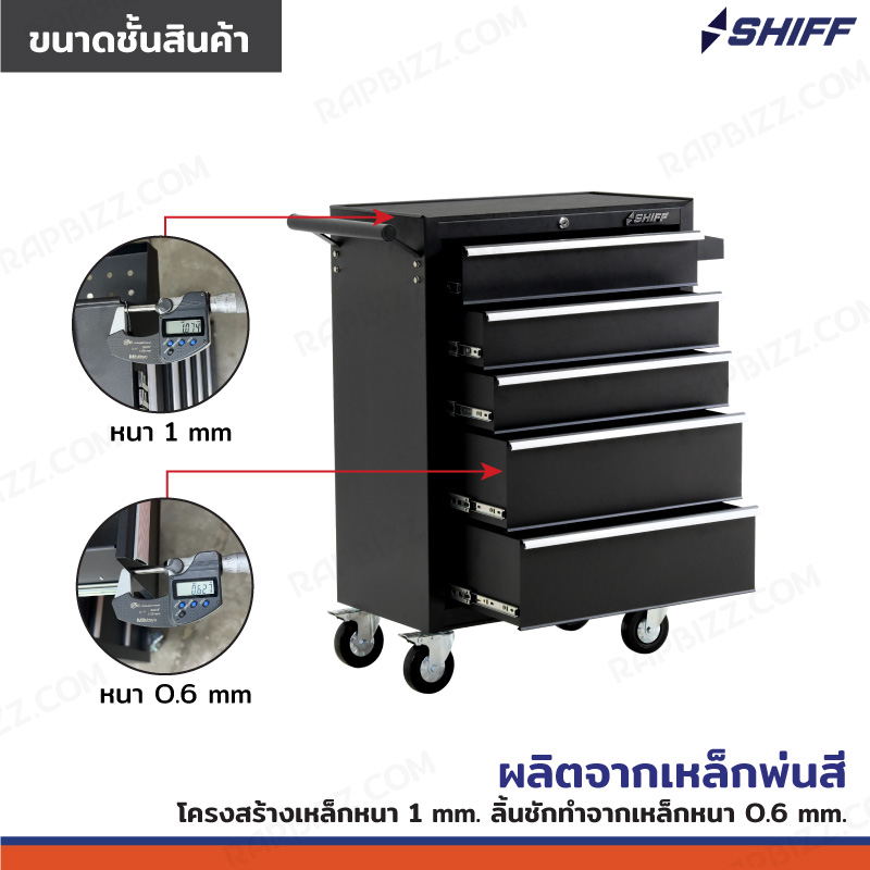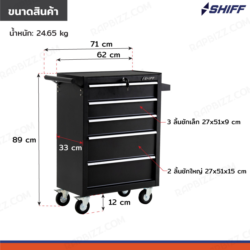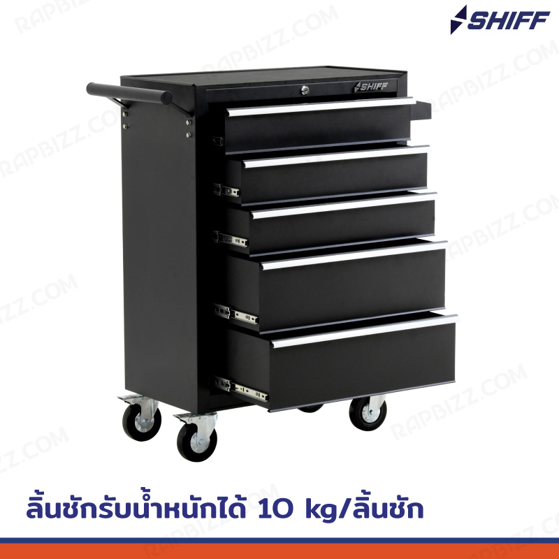 SHIFF ตู้เก็บเครื่องมือรถเข็น 5 ลิ้นชัก 33x71x89 cm สีดำ TT-245BK