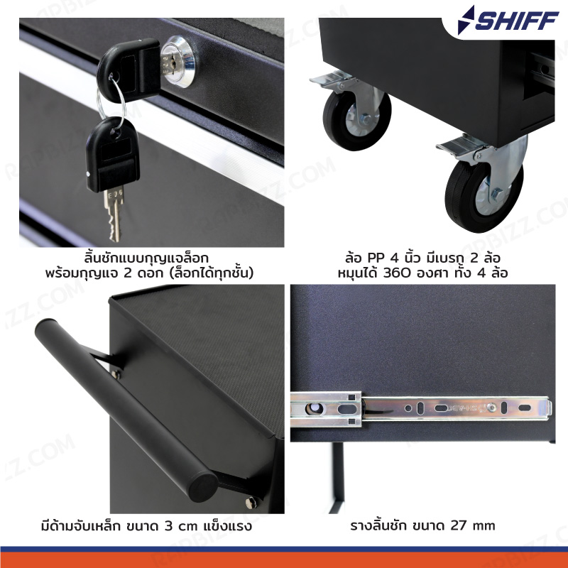 - มีล้อเลื่อน, ลิ้นชัก, กุญแจล็อก, ด้ามจับ พร้อมกับฟังก์ชันการใช้งานหลากหลายครบครัน