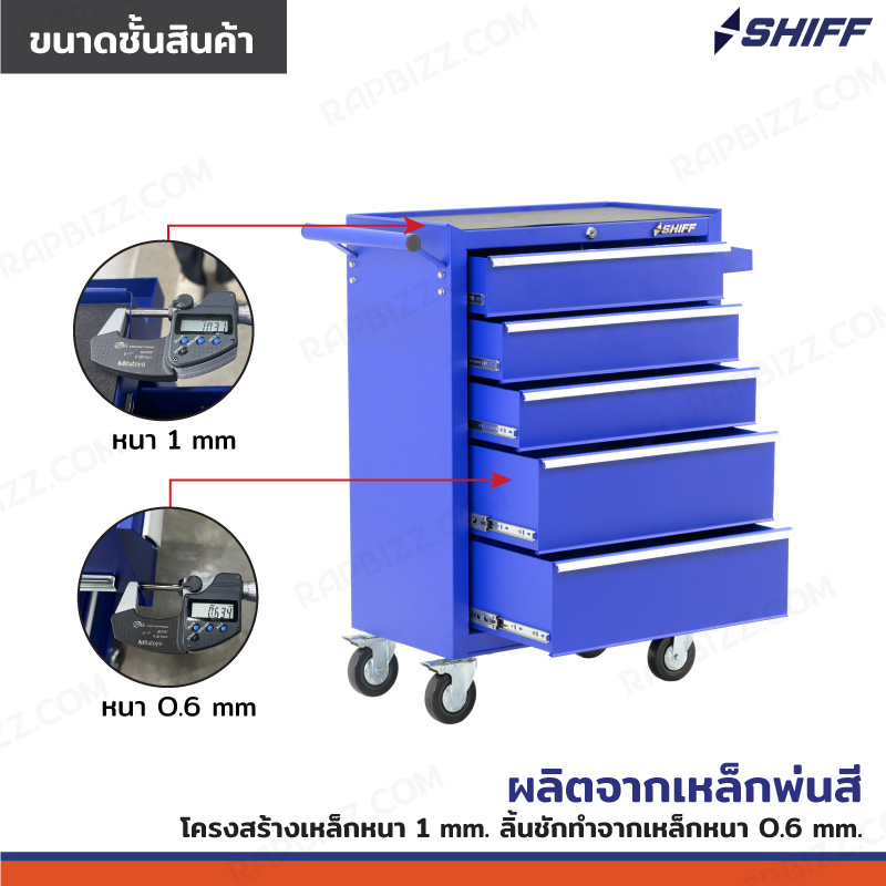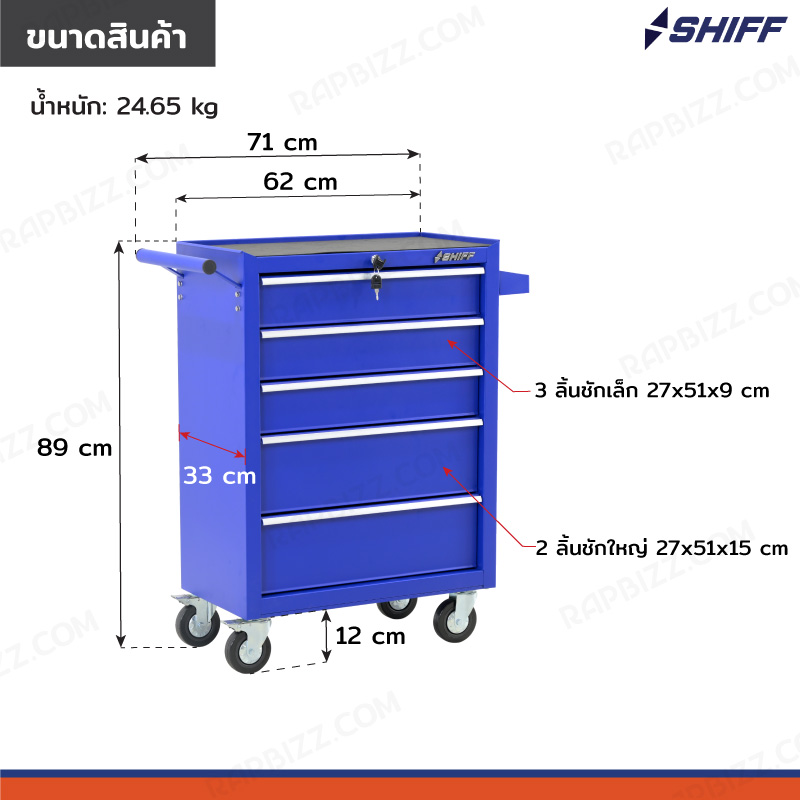 SHIFF ตู้เก็บเครื่องมือรถเข็น 5 ลิ้นชัก 33x71x89 cm สีน้ำเงิน TT-245BL