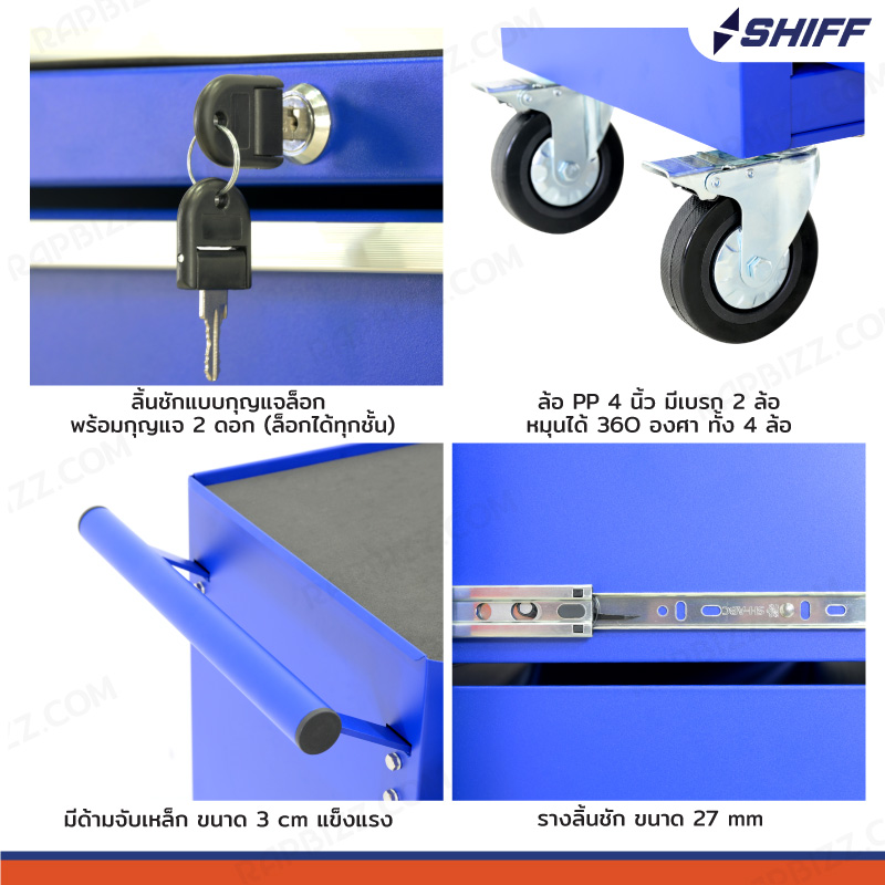 - มีล้อเลื่อน, ลิ้นชัก, กุญแจล็อก, ด้ามจับ พร้อมกับฟังก์ชันการใช้งานหลากหลายครบครัน