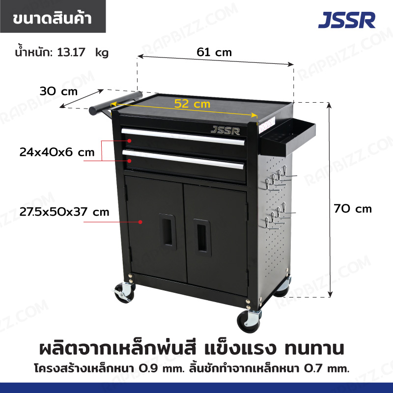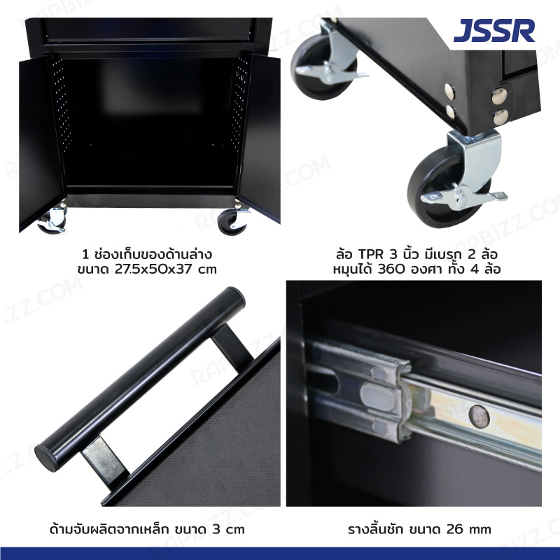 JSSR ตู้เครื่องมือ 2 ลิ้นชัก+ 1 ช่องเก็บของ 30x61x70 cm สีดำ TT-202BK