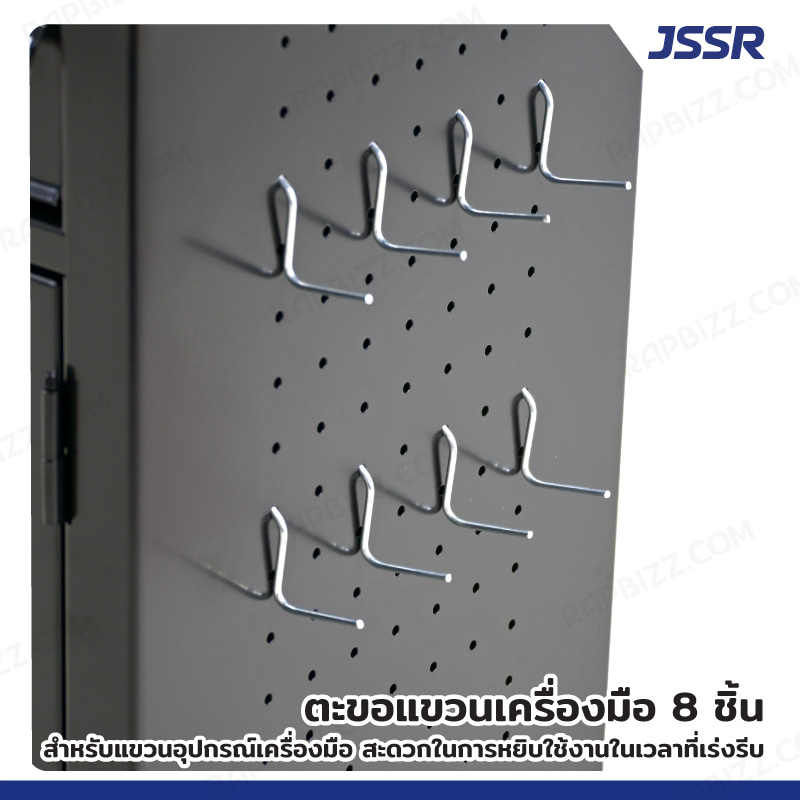 - มีตะขอแขวนเครื่องมือ 8 ชิ้น
