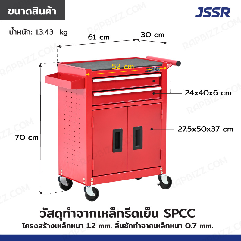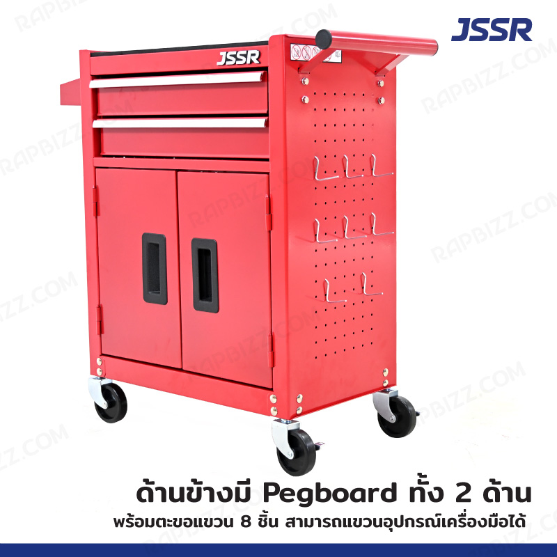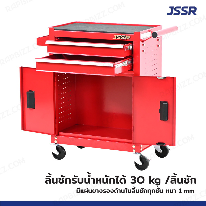 JSSR ตู้เครื่องมือ 2 ลิ้นชัก+ช่องเก็บของ 30x61x70 cm สีแดง TT-202RD