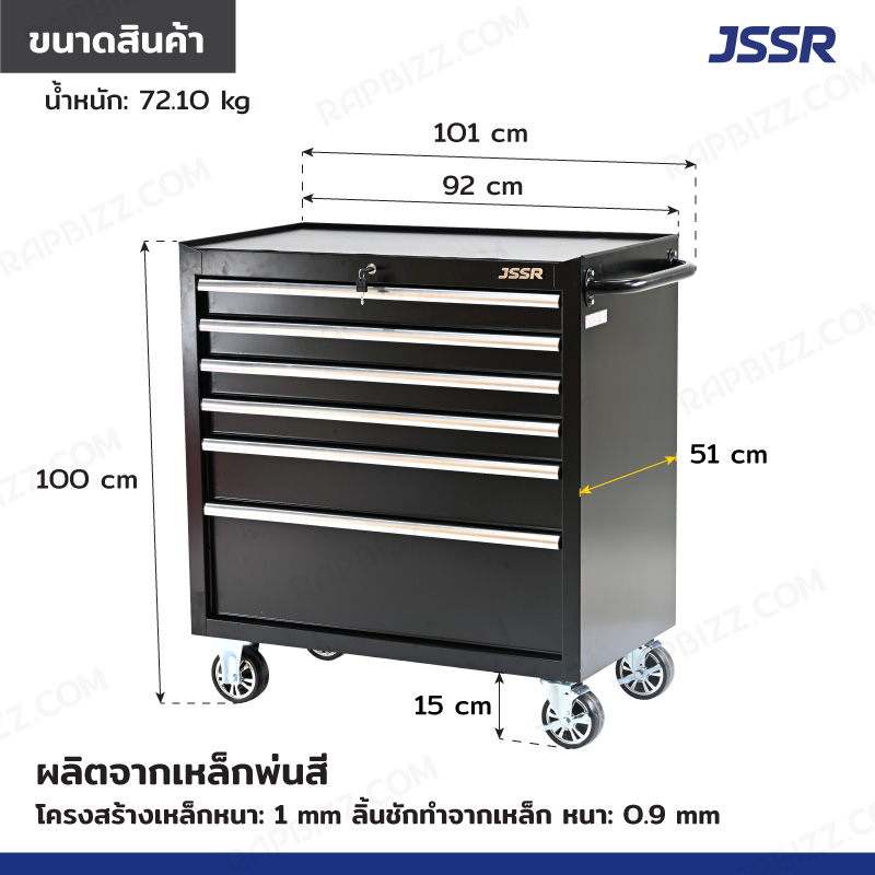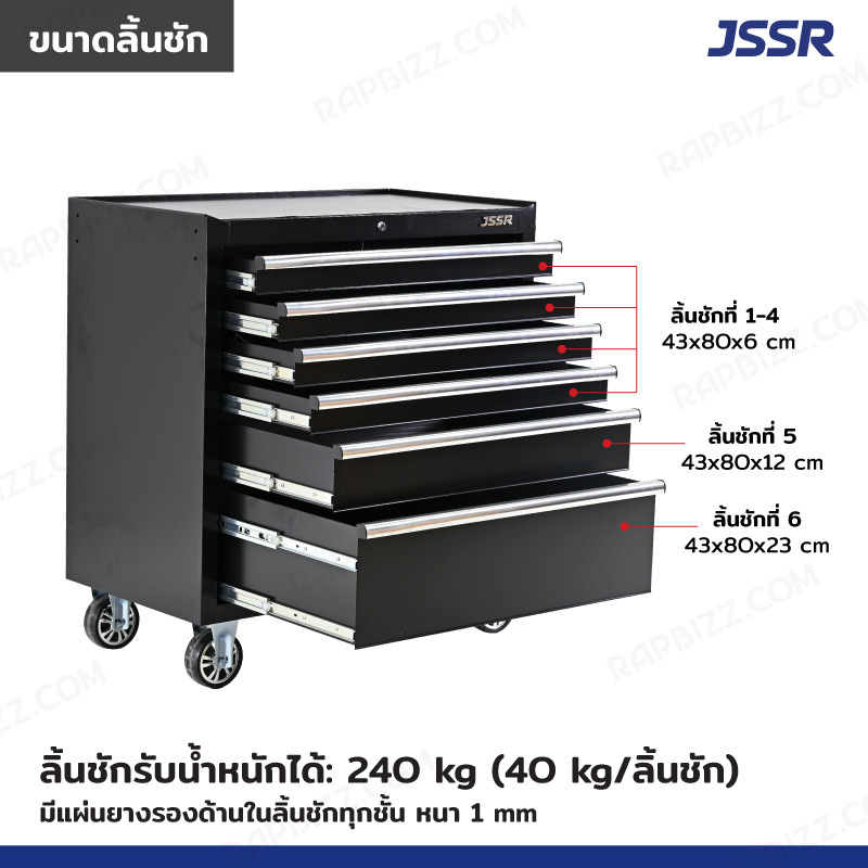 JSSR ตู้เครื่องมือ 6 ลิ้นชัก รุ่น Heavy 51x101x100 CM สีดำ TT-3606