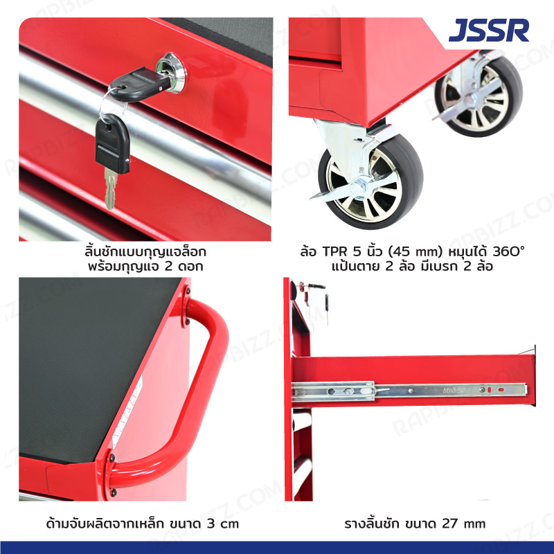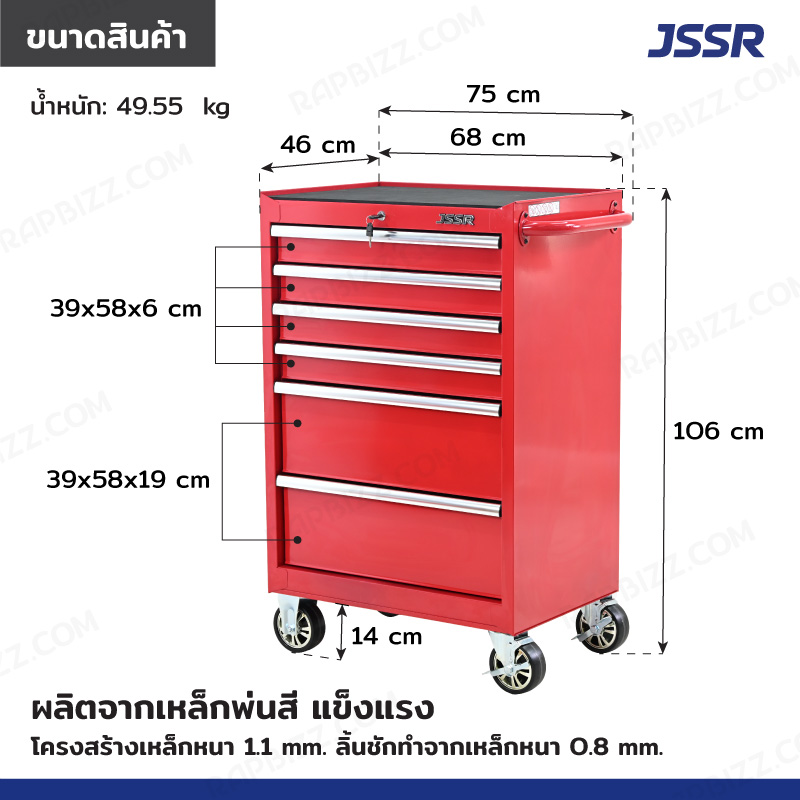 JSSR ตู้เครื่องมือ 6 ลิ้นชัก มีกุญแจล็อค 46x75x106 CM สีแดง TT-2706RD