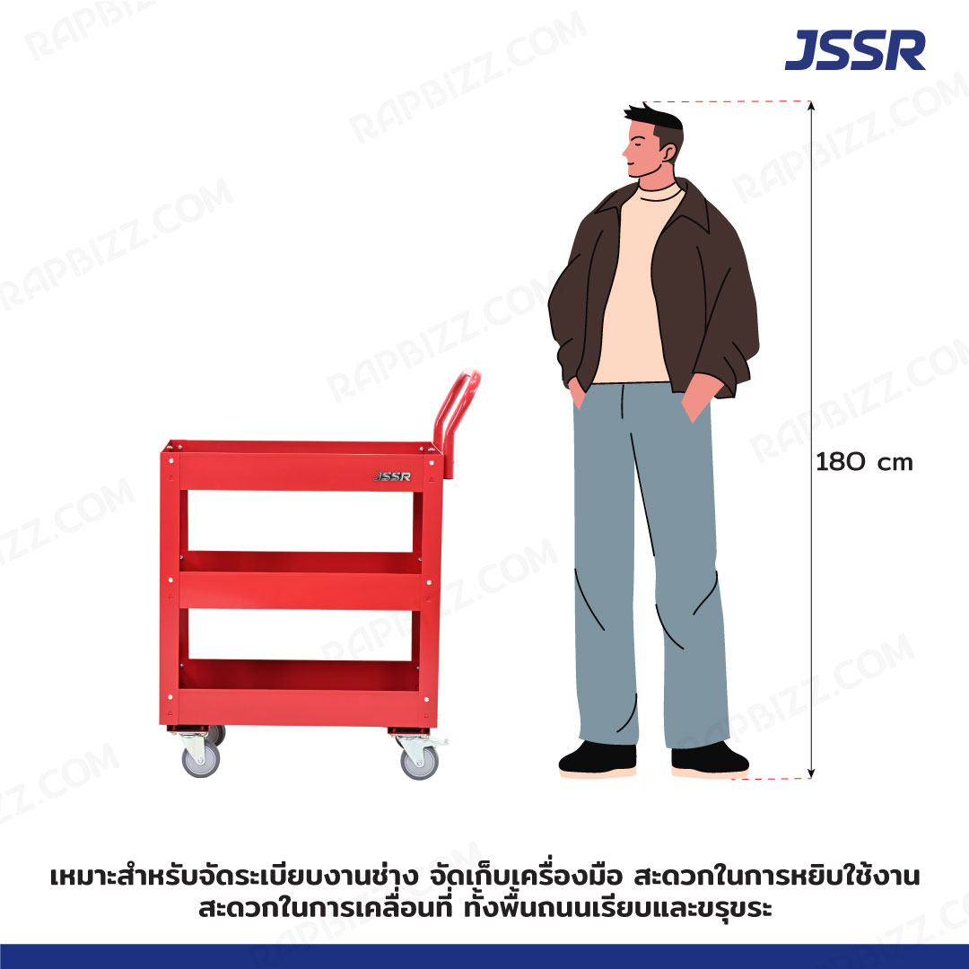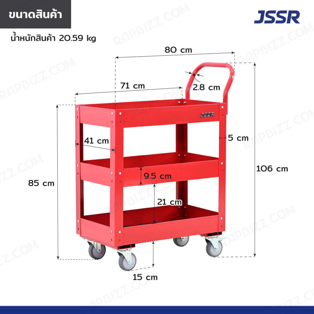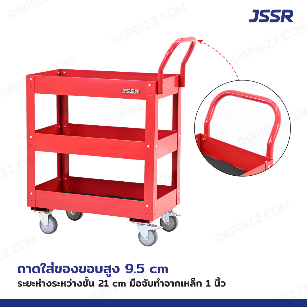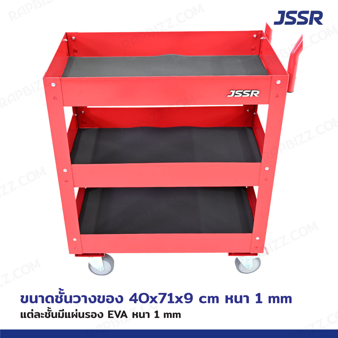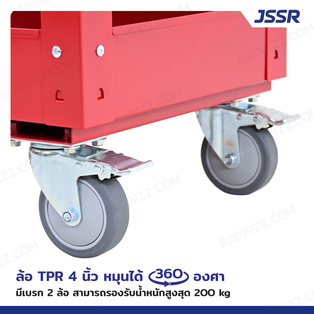 JSSR รถเข็นเครื่องมือ 3 ชั้น ล้อเงียบ TPR 4 นิ้ว 41x80x106 cm สีแดง TT-003H-RD