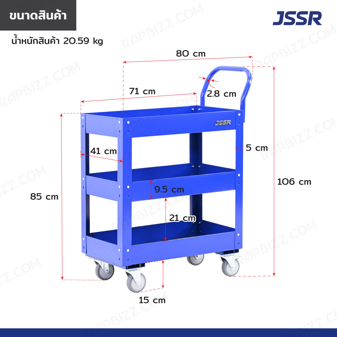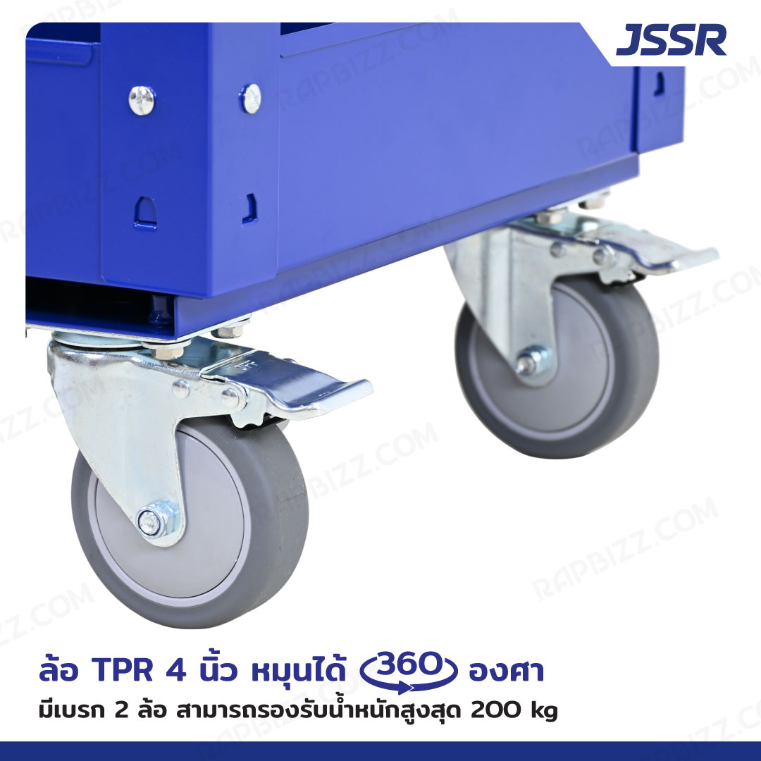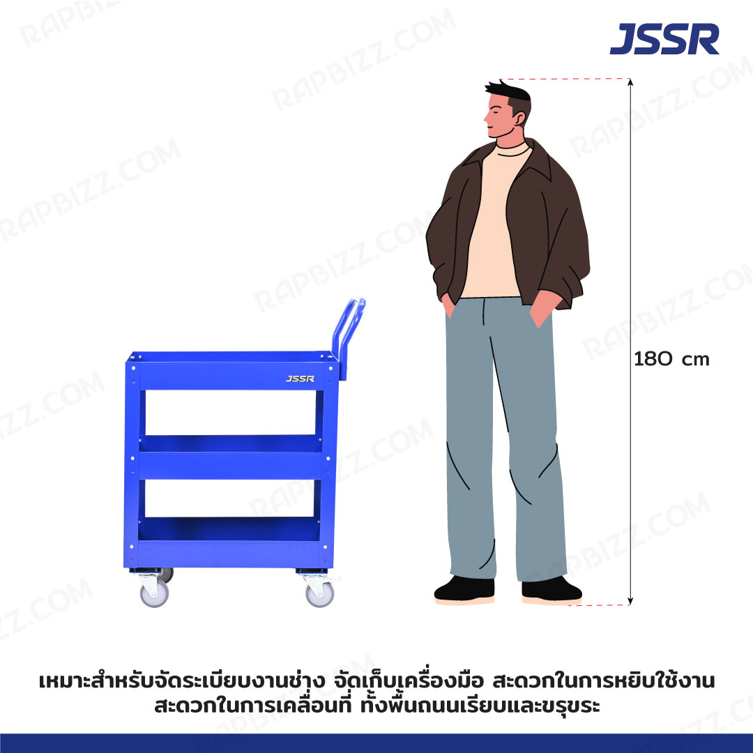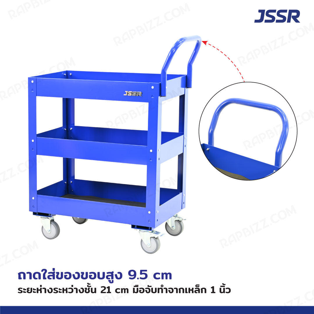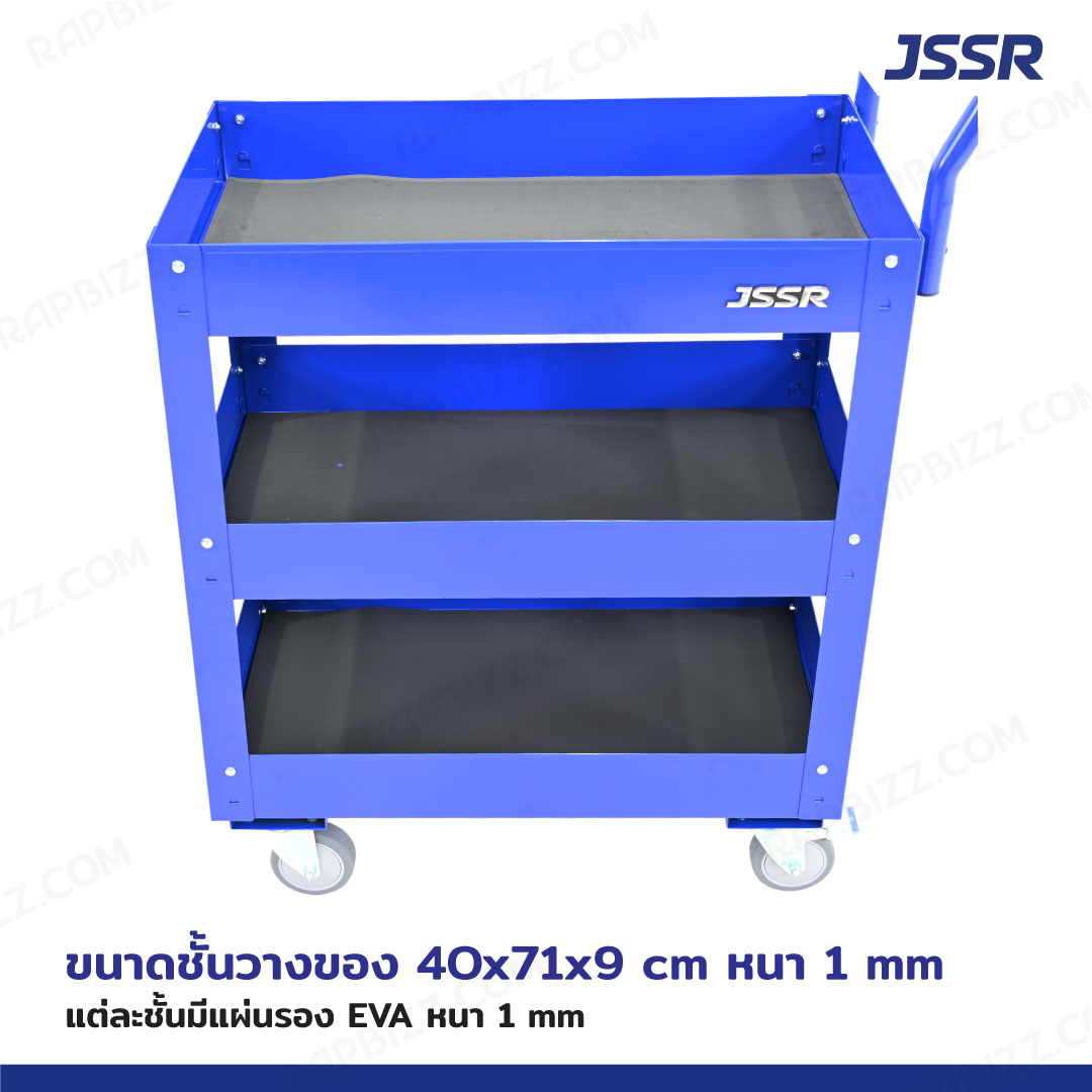 JSSR รถเข็นเครื่องมือ 3 ชั้น ล้อเงียบ TPR 4 นิ้ว 41x80x106 cm สีน้ำเงิน TT-003H-BL