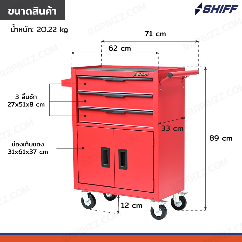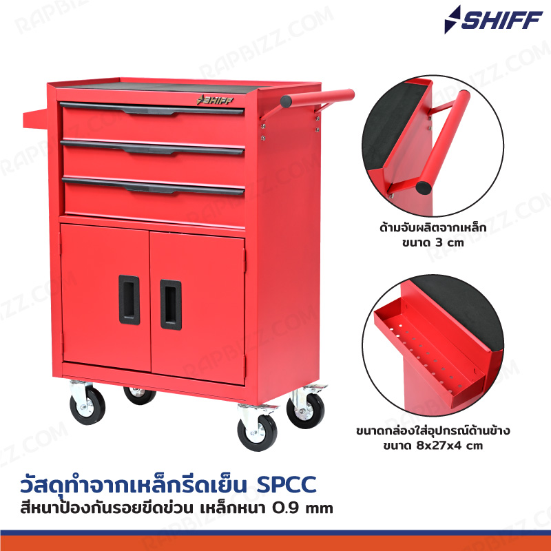 SHIFF ตู้เครื่องมือ 3 ลิ้นชัก+ช่องเก็บของ 33x71x89 cm สีแดง TT-243RD