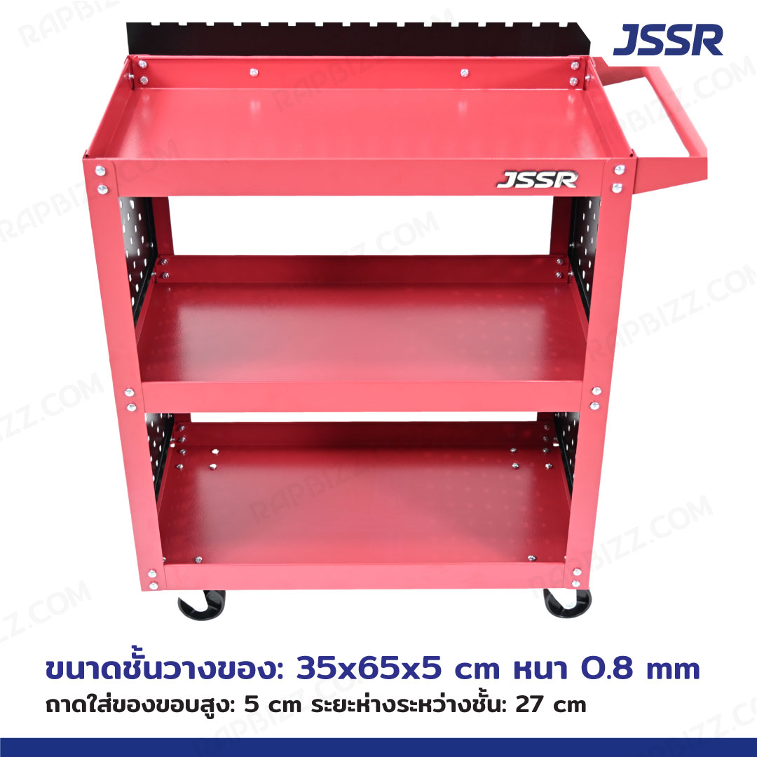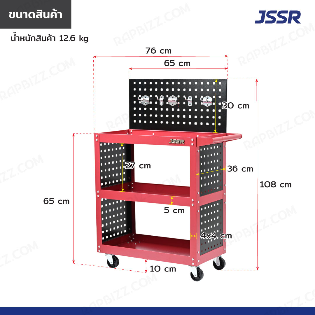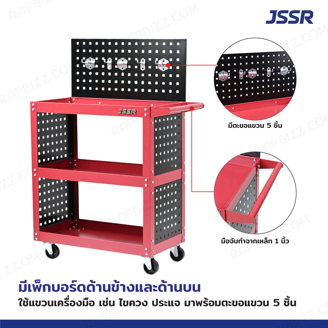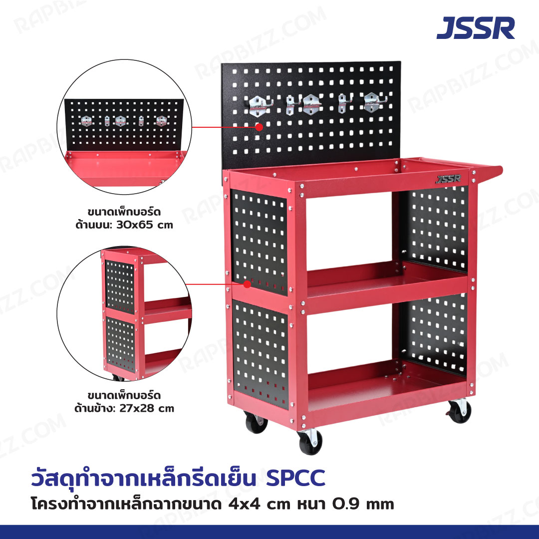 JSSR รถเข็นเครื่องมือช่าง 3 ชั้น 36x76x108 CM พร้อมเพ็กบอร์ด บน-ล่าง สีแดง TT-203G-RD