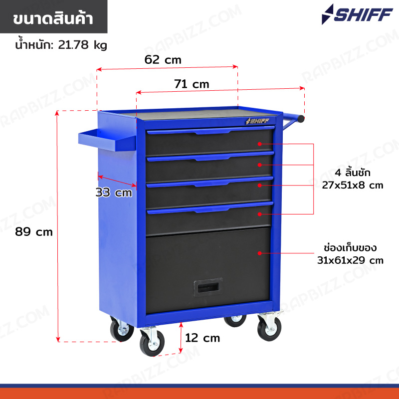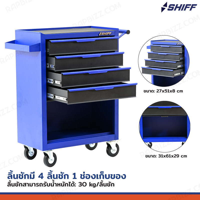 SHIFF ตู้เครื่องมือ 4 ลิ้นชัก+ช่องเก็บของ 33x71x89 cm สีน้ำเงิน TT-244BL