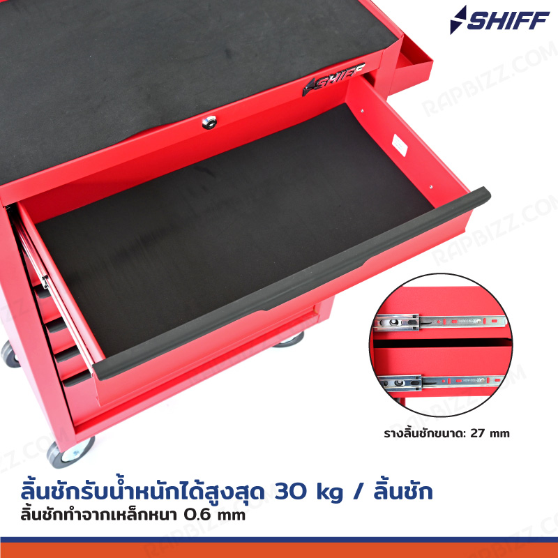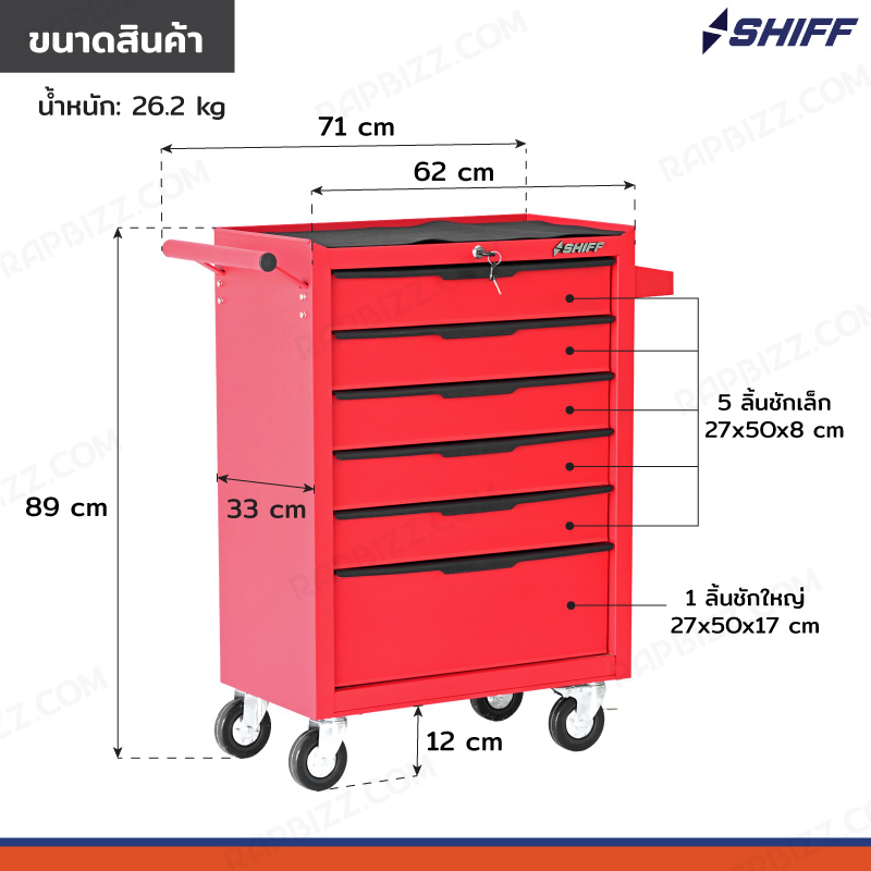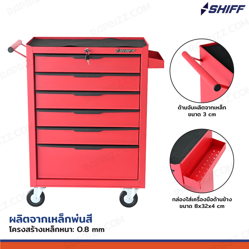 SHIFF ตู้เครื่องมือรถเข็น 6 ลิ้นชัก 33x71x89 cm มีกุญแจล็อค สีแดง TT-246RD