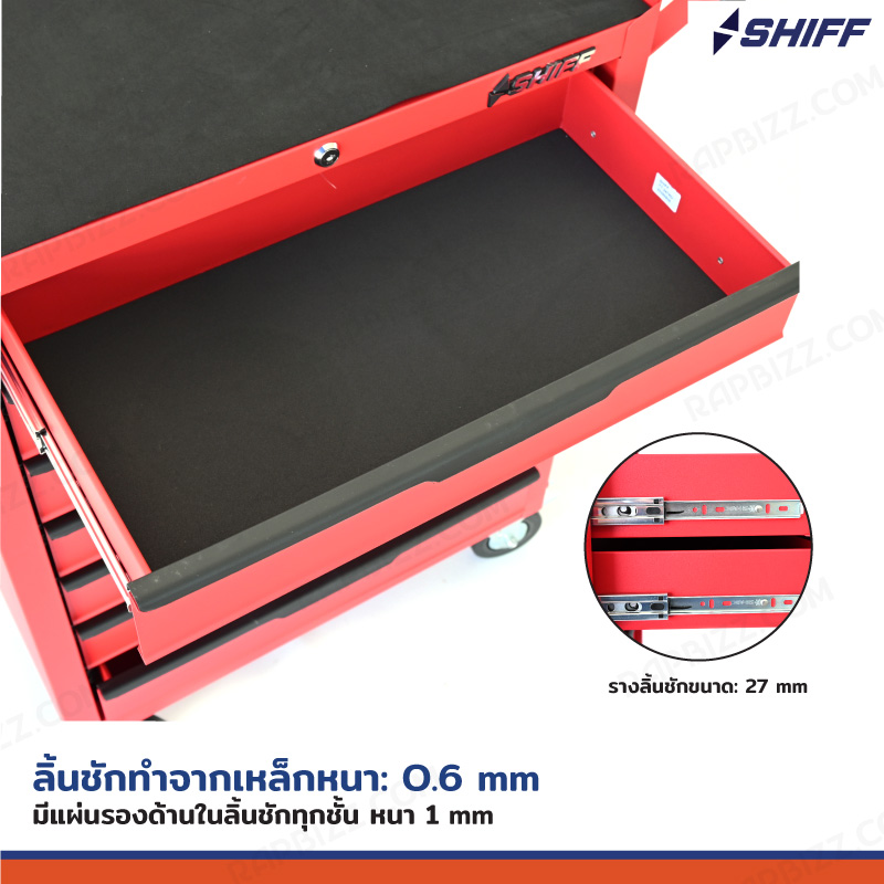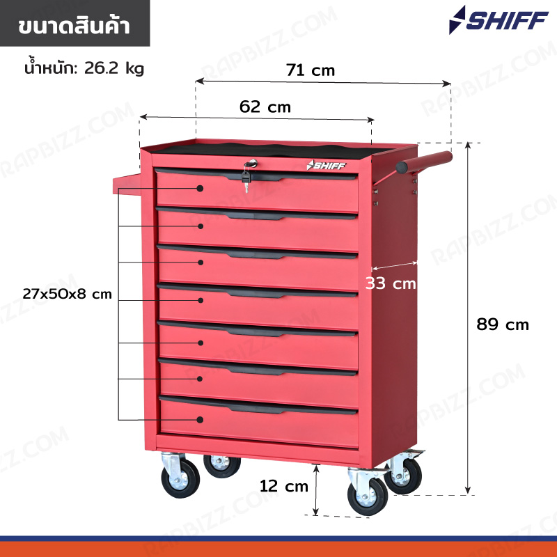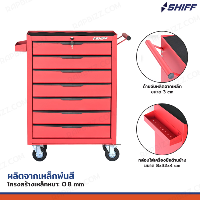 SHIFF ตู้เครื่องมือรถเข็น 7 ลิ้นชัก 33x71x89 cm มีกุญแจล็อค สีแดง TT-247RD
