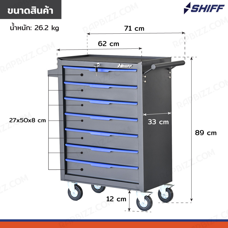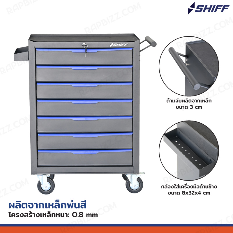 SHIFF ตู้เครื่องมือรถเข็น 7 ลิ้นชัก 33x71x89 cm มีกุญแจล็อค สีดำ TT-247BK