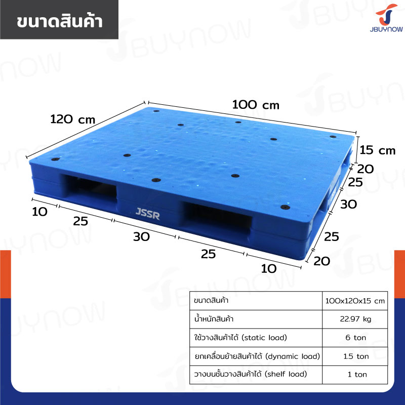 พาเลทพลาสติก HDPE หน้าทึบ 100x120x15 cm สีฟ้า JSSR JBUYNOW 1210