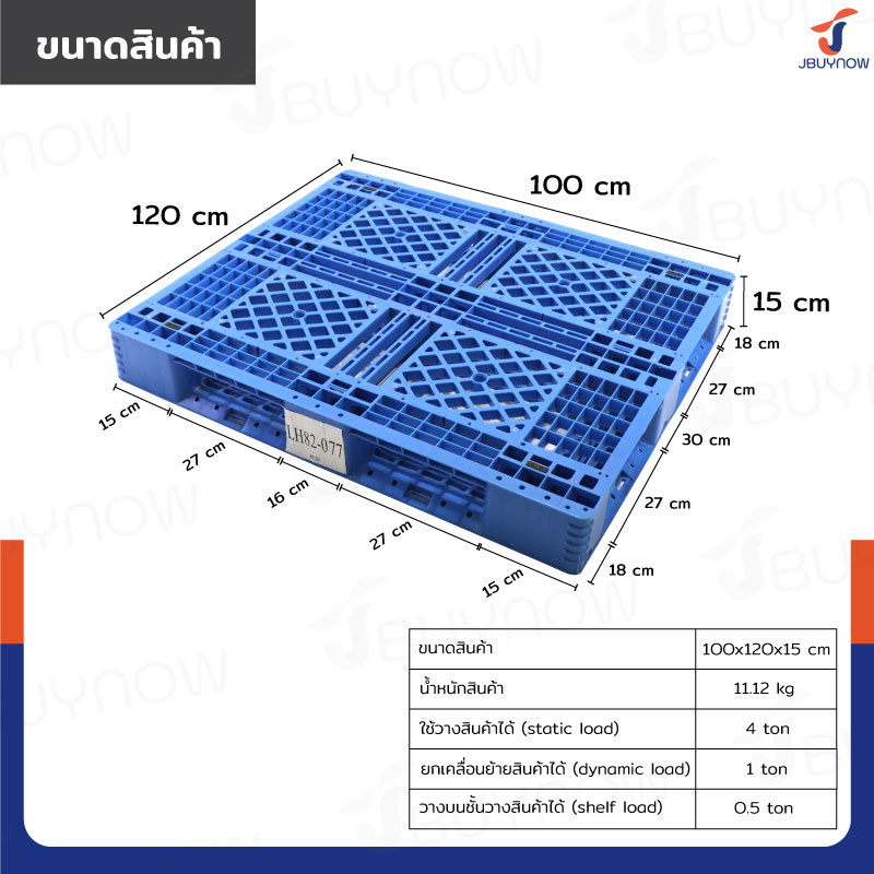 พาเลทพลาสติก HDPE หน้าตะแกรง 100x120x15 cm สีฟ้า JBUYNOW LH82-075