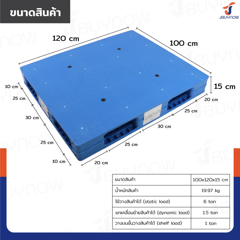 พาเลทพลาสติก HDPE หน้าทึบ 100x120x15 cm สีฟ้า JBUYNOW LH82-073
