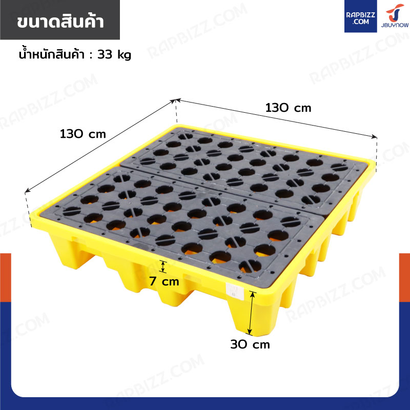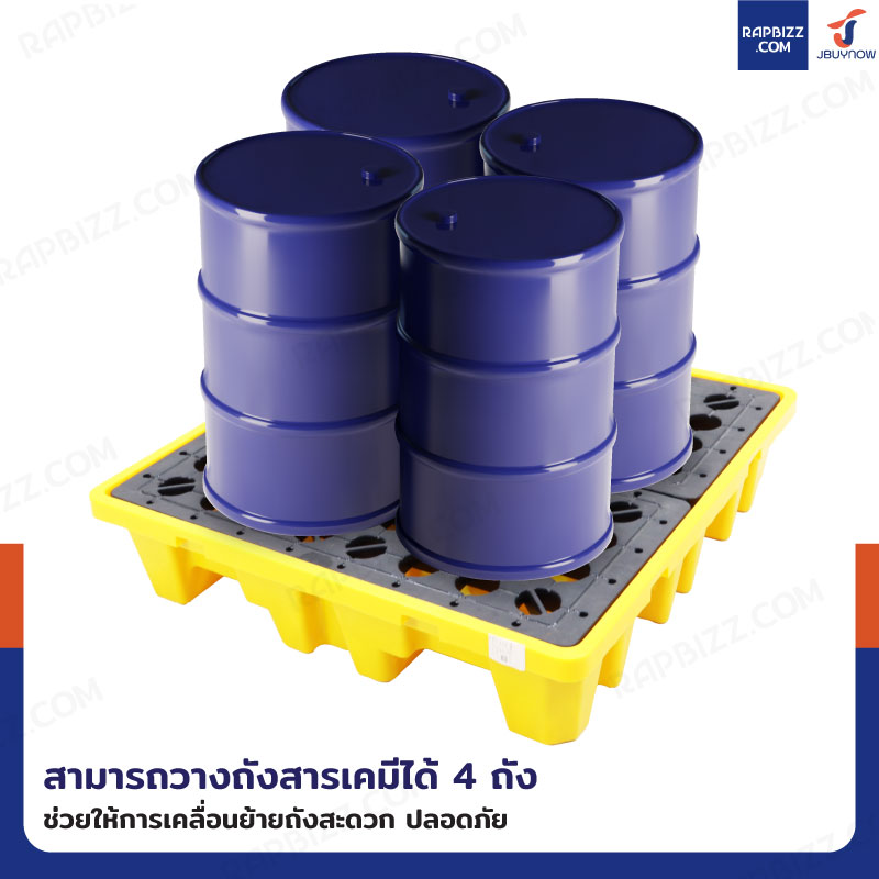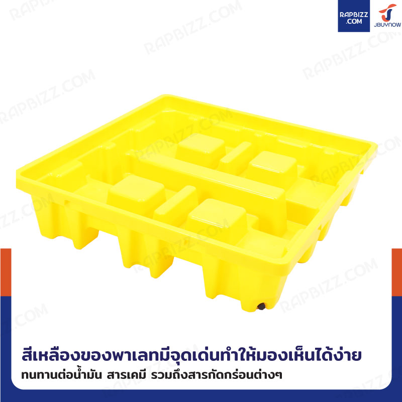 พาเลทรองสารเคมี ป้องกันการหก-ล้น 280L (4ถัง) 130x130x30 สีเหลือง JBUYNOW 4BAR