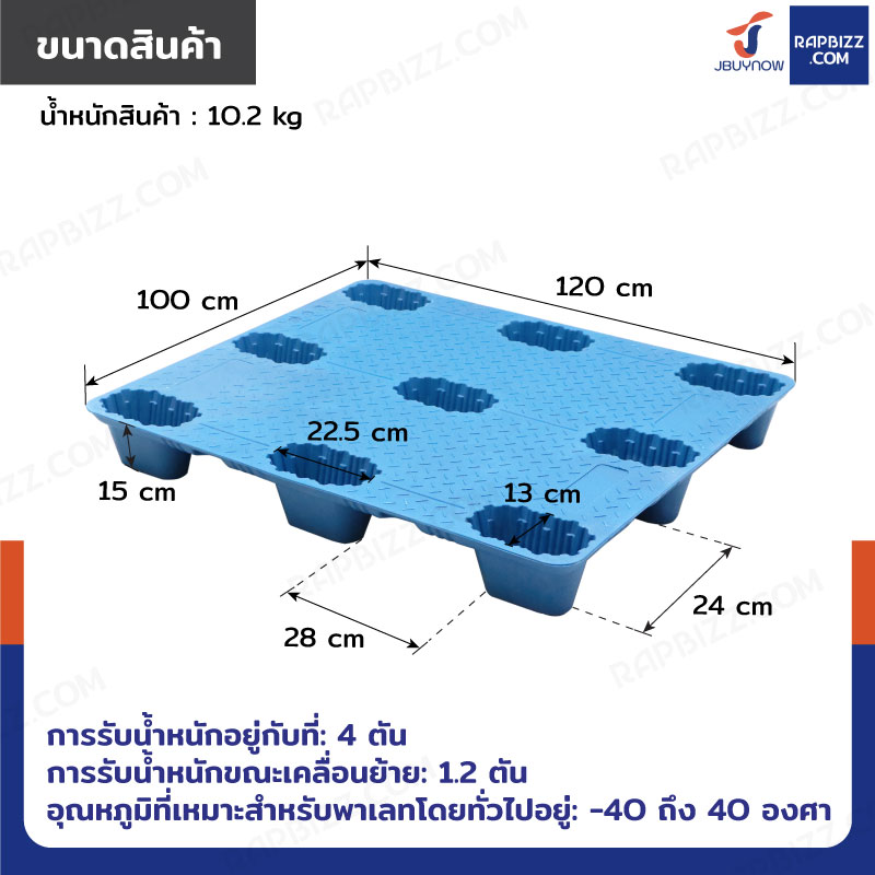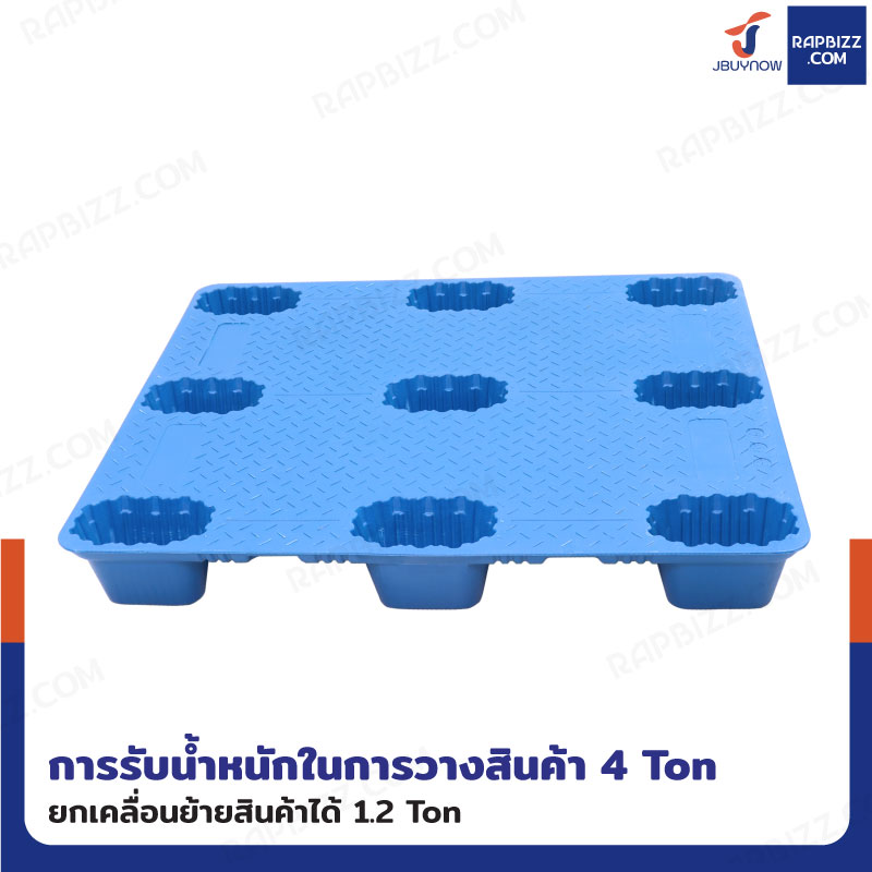 พาเลทพลาสติก HDPE แบบถาดหลุม 9 ขา 100x120x15 cm สีฟ้า