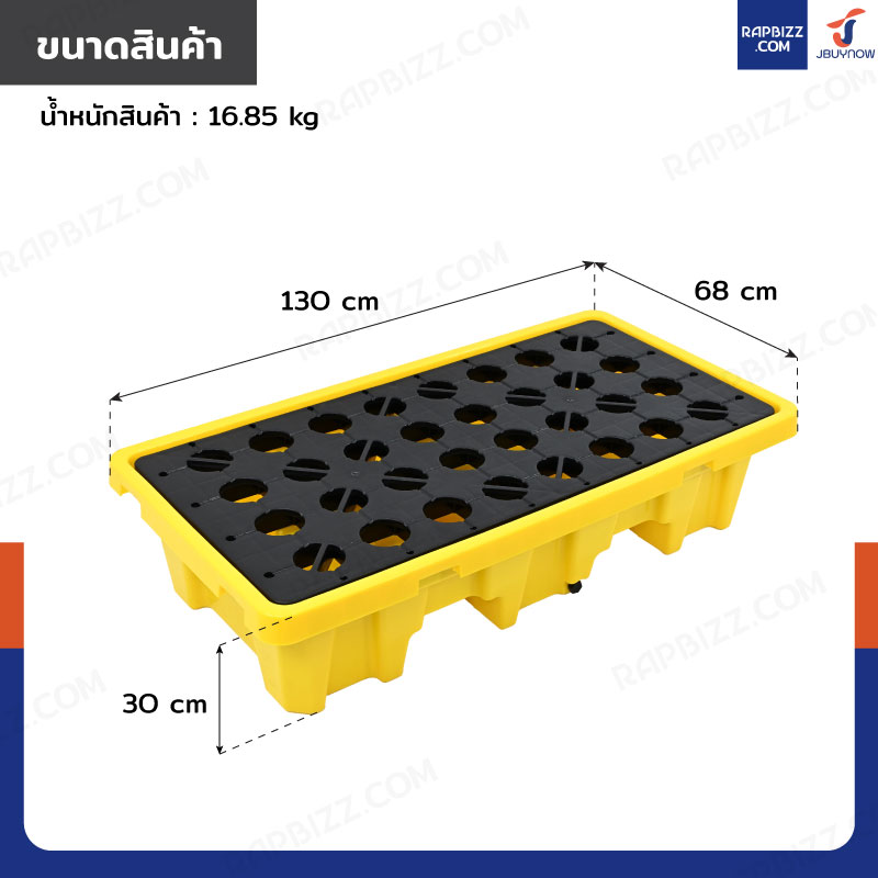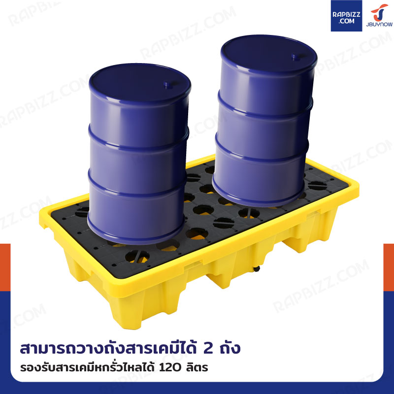 พาเลทรองสารเคมี ป้องกันการหก-ล้น 120L (2ถัง) 68x130x30 ซม. 2BAR-120L