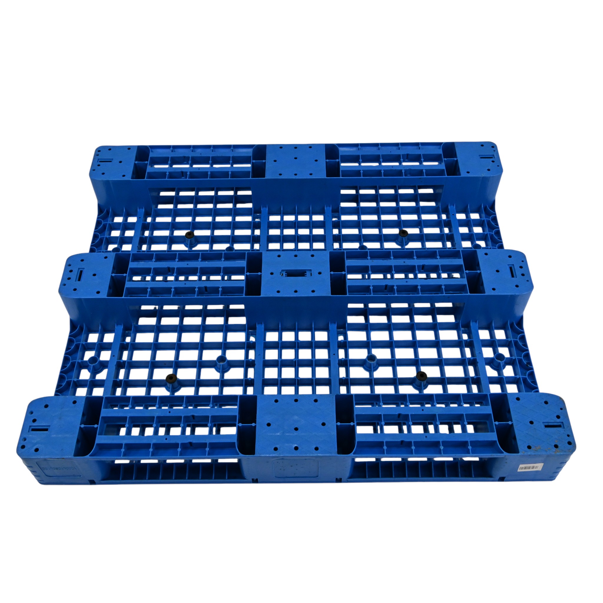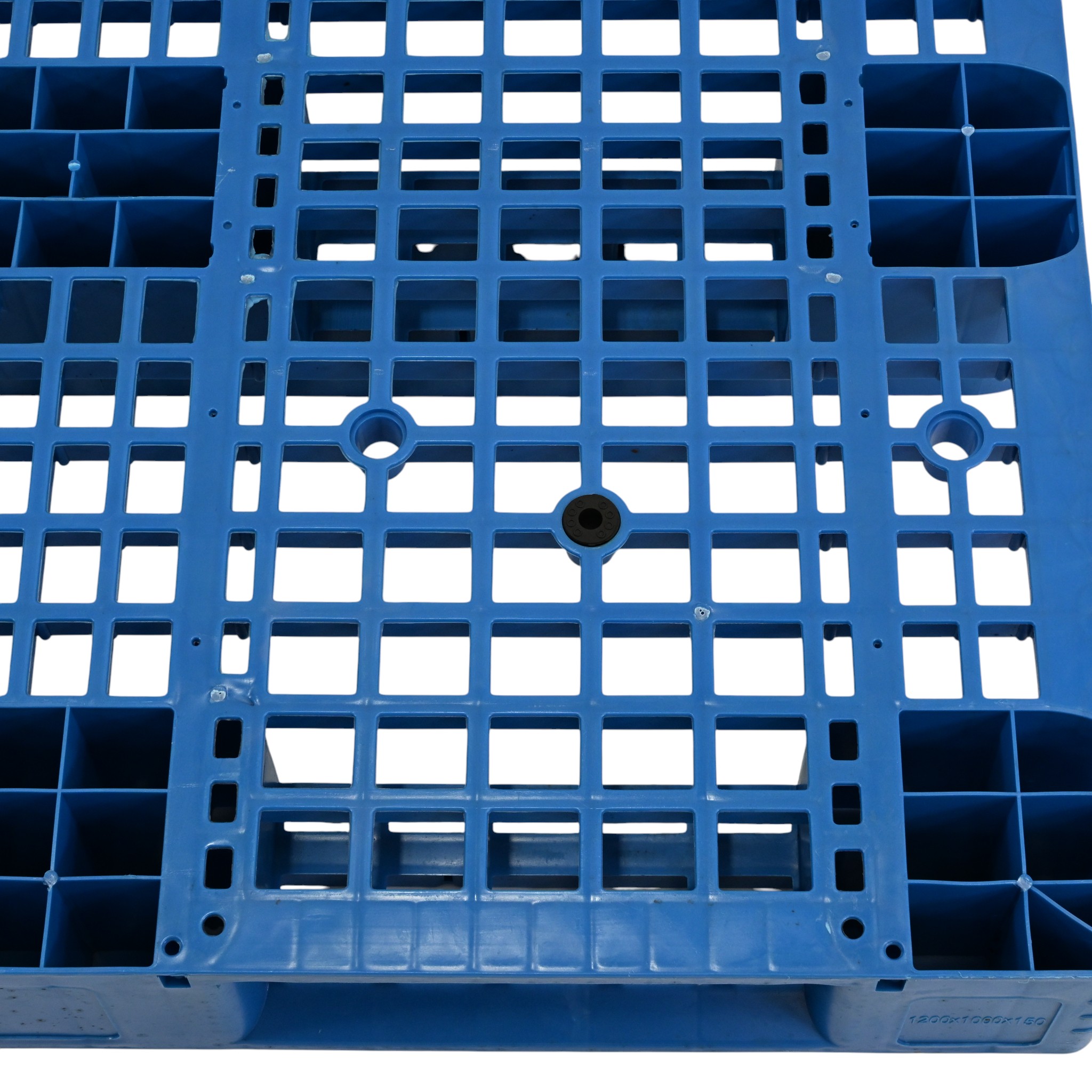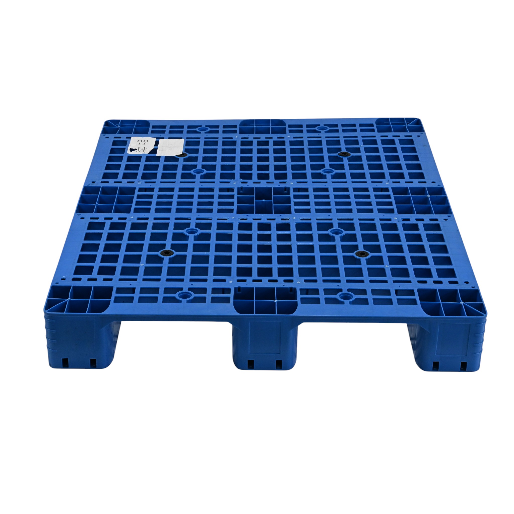 พาเลทพลาสติก HDPE หน้าตะแกรง 3 แถว แบบ 9 ขา 100x120x15 cm สีฟ้า 1210