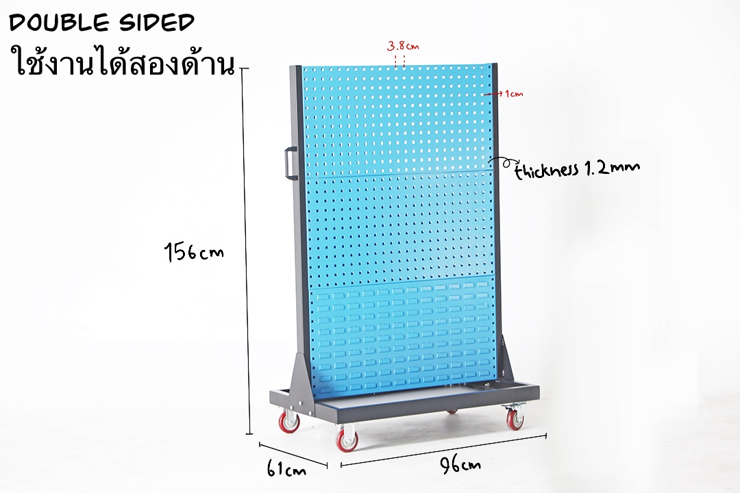 แผงแขวนจัดเก็บอุปกรณ์เครื่องมือแบบมีล้อ แบบใช้งานได้ทั้ง 2 ด้าน