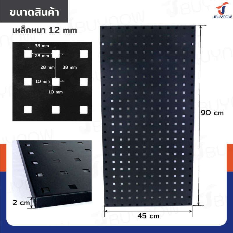 กระดานเพ็กบอร์ด แผงเหล็กเจาะรูติดผนัง 45x90x2cm เหล็กหนา 1.2mm สีดำ JBUYNOW ST20034-6B