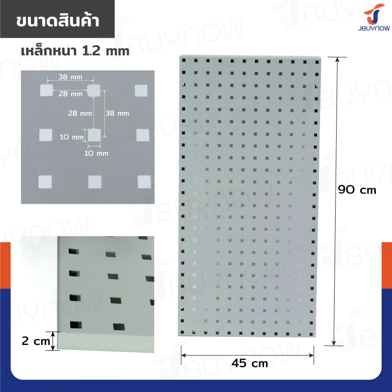 กระดานเพ็กบอร์ด แผงเหล็กเจาะรูติดผนัง 45x90x2 cm เหล็กหนา 1.2mm สีเทา ST20034-6G