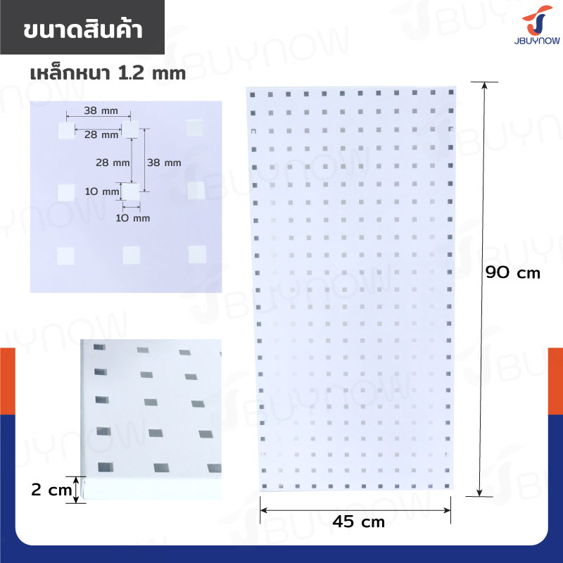 กระดานเพ็กบอร์ด แผงเหล็กเจาะรูติดผนัง 45x90x2 cm เหล็กหนา 1.2mm สีขาว JBUYNOW ST20034-6W