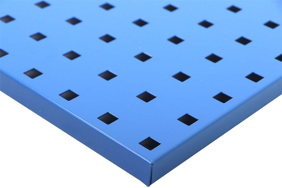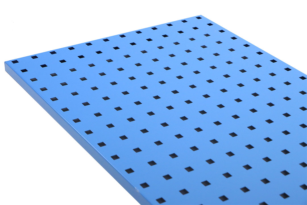 Pegboard กระดานเพ็กบอร์ด แผงเหล็กเจาะรูติดผนัง เหล็กหนา 1.5mm สีฟ้า 45x90x2cm ST190401-15