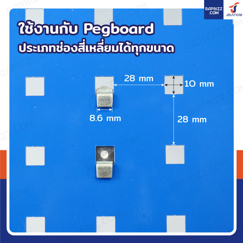 - สามารถใช้กับ Pegboard ประเภทช่องเสียบสี่เหลี่ยมได้ทุกขนาด