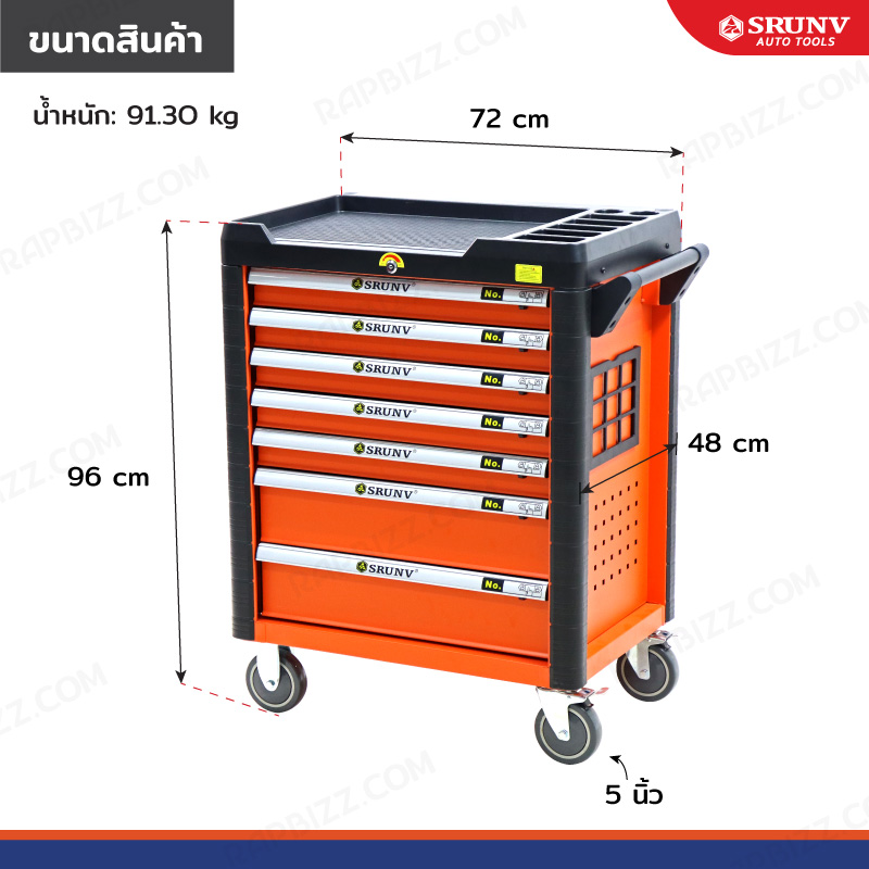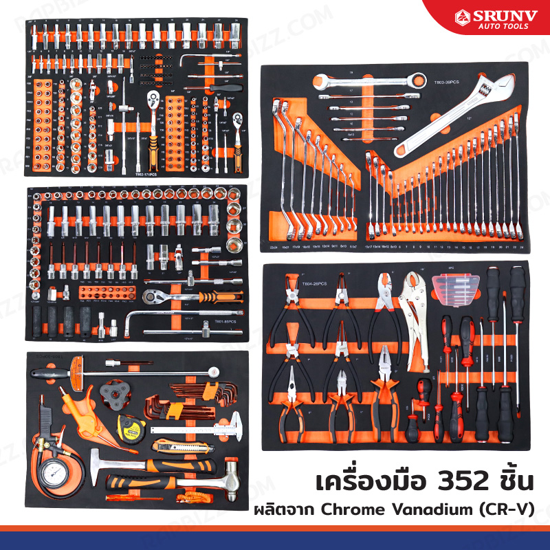 SRUNV ตู้เครื่องมือช่าง 7 ลิ้นชัก เครื่องมือ 352 ชิ้น (CR-V) J1-A75352