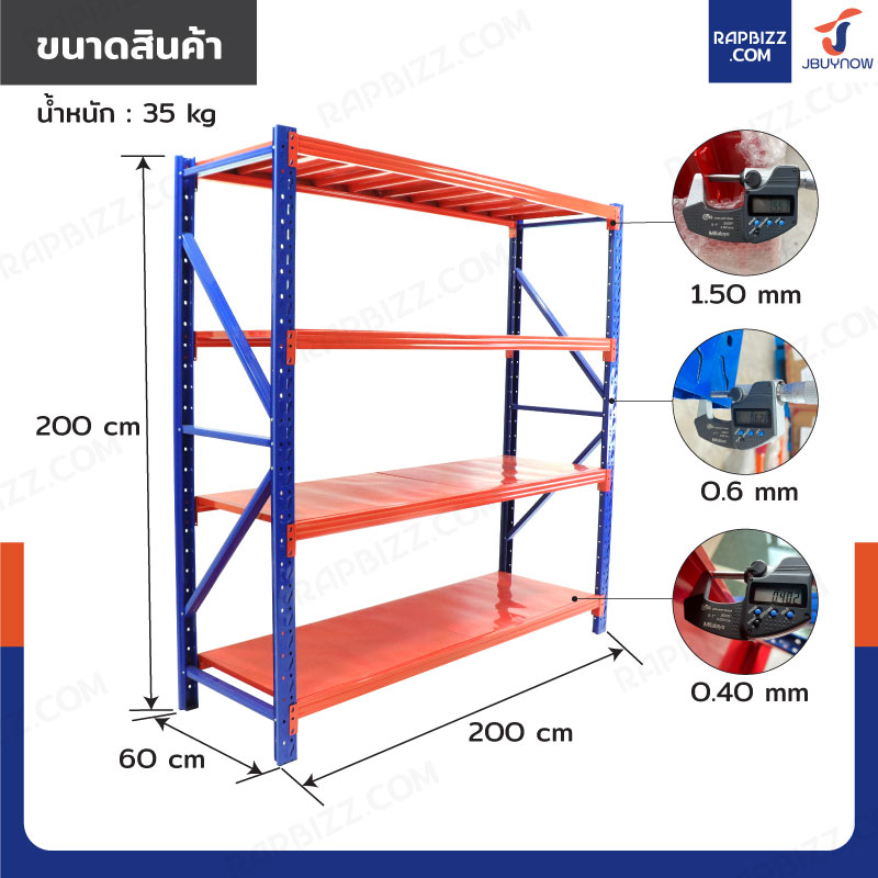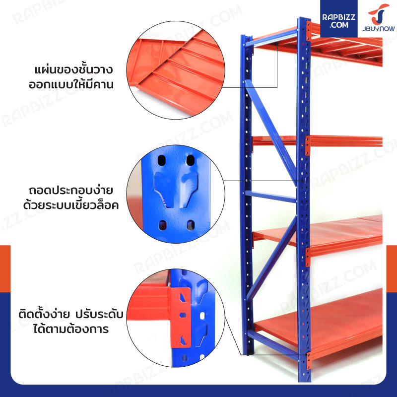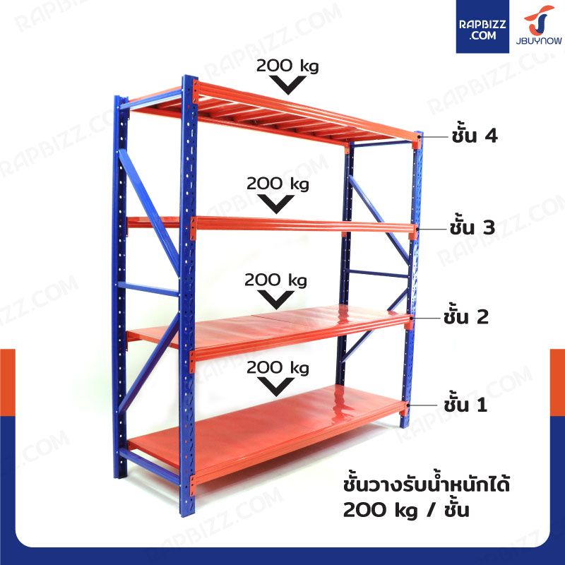 ชั้นวางของในโรงงาน 4 ชั้น 60x200x200cm สีส้ม-น้ำเงิน JBUYNOW 200PLUS(ประกอบ)