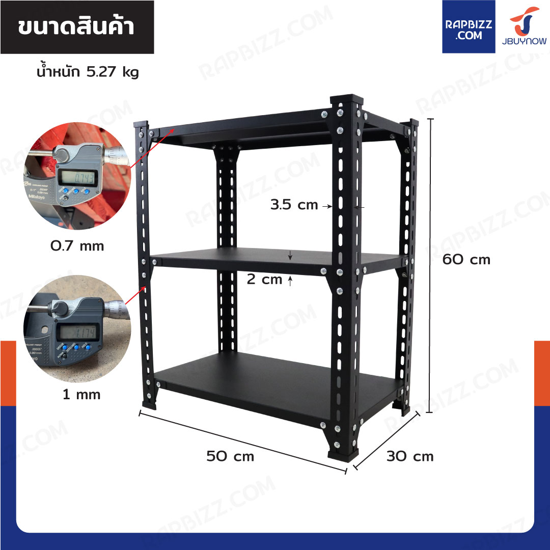 ชั้นวางของเหล็ก 3 ชั้น ชั้นวางอเนกประสงค์ สีดำ ขนาด 30x50x60 cm