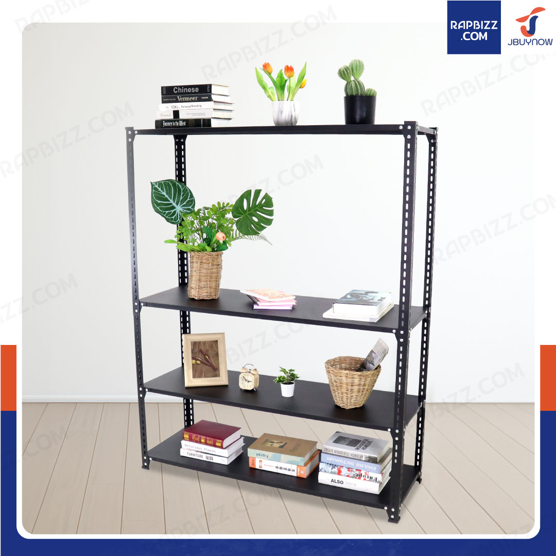 ชั้นวางของเหล็ก 4 ชั้น ชั้นวางอเนกประสงค์ สีดำ 40x120x150 cm